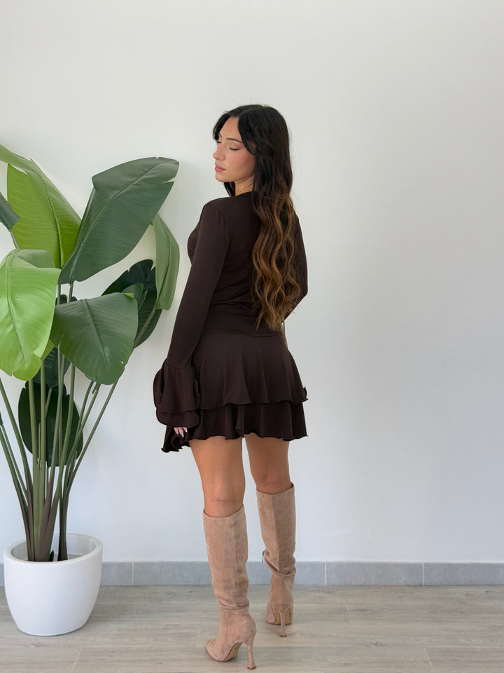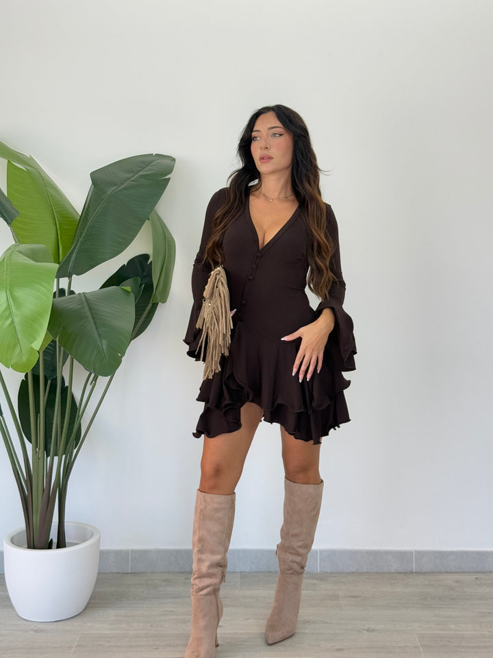 Abitino con pantaloncini interno, veri bottoni asimmetrici e maniche con volant . Abitino perfetto per ogni occasione! Vestibilitá elasticizzata
