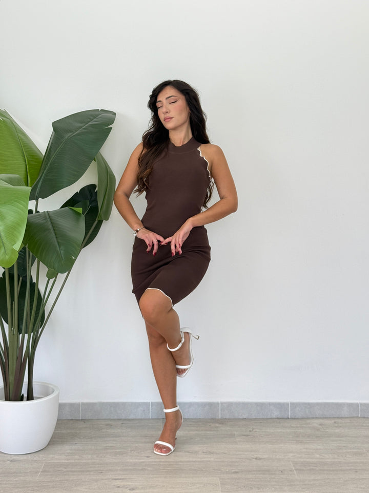 Scopri l’abitino Felisos, realizzato in lana rasata a costine elasticizzato con scollo all’americana e bordini a contrasto. Questo vestitino offre un look versatile e confortevole, ideale per ogni occasione.