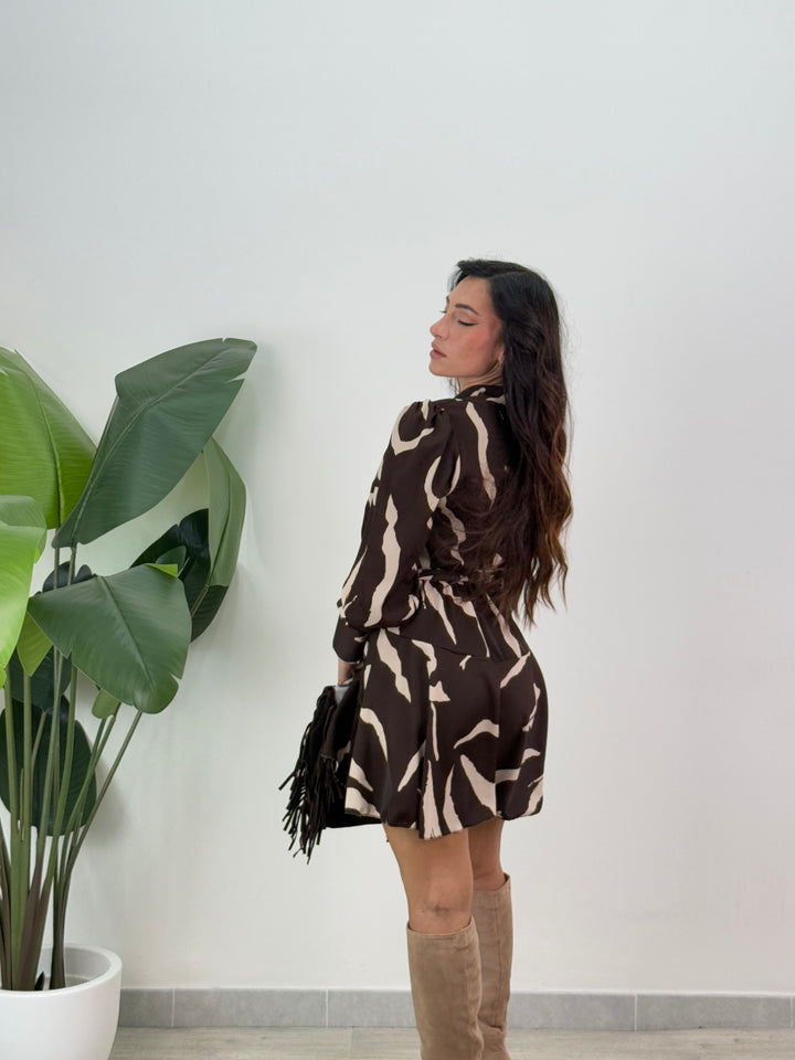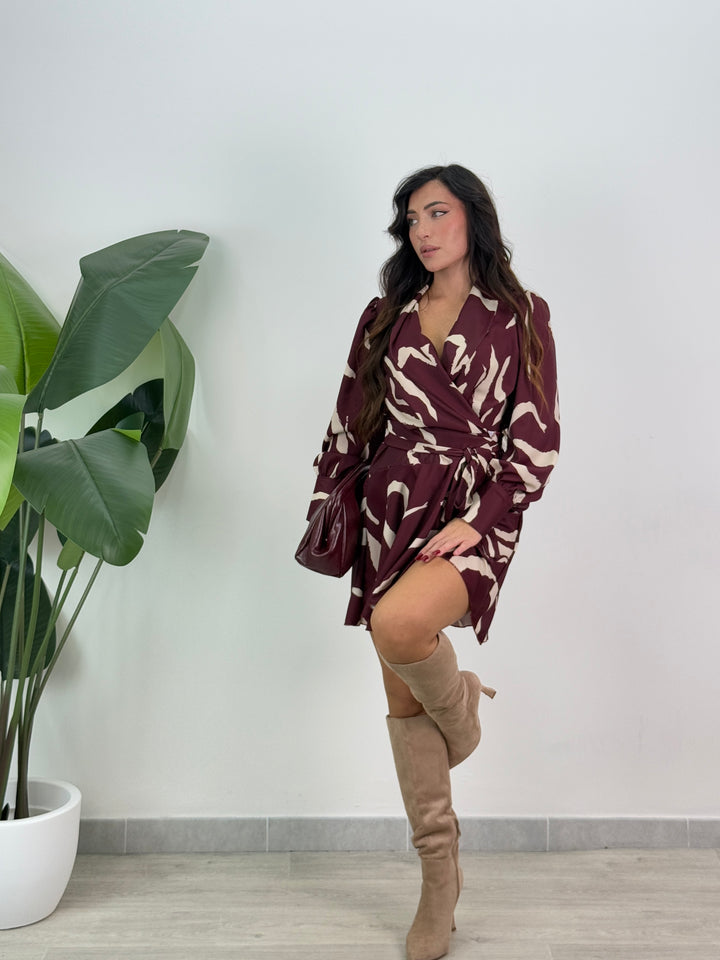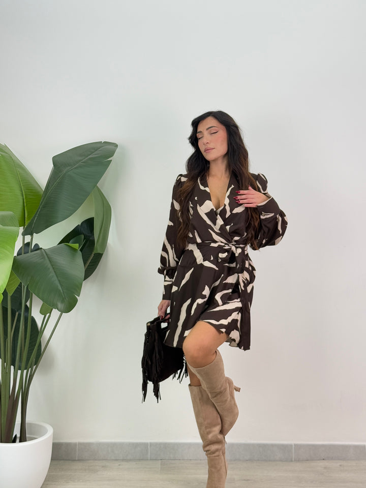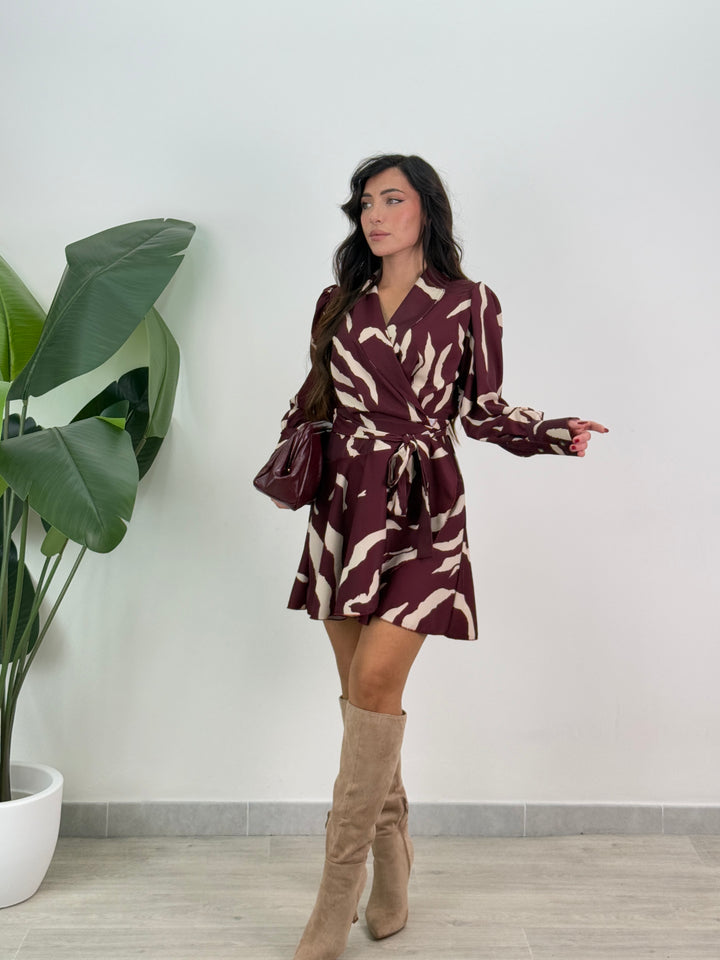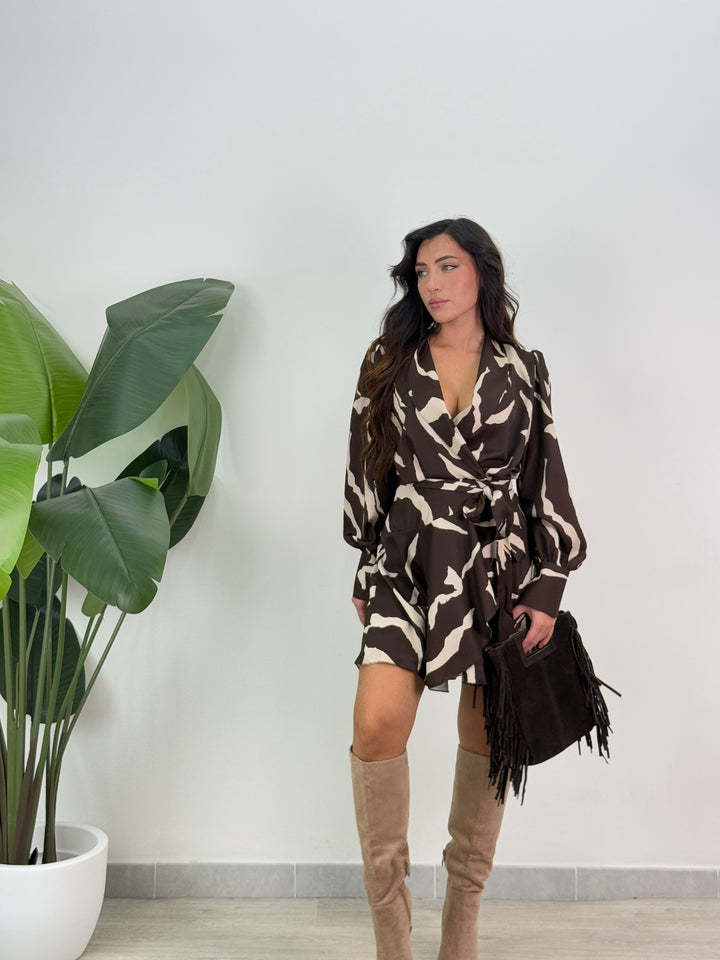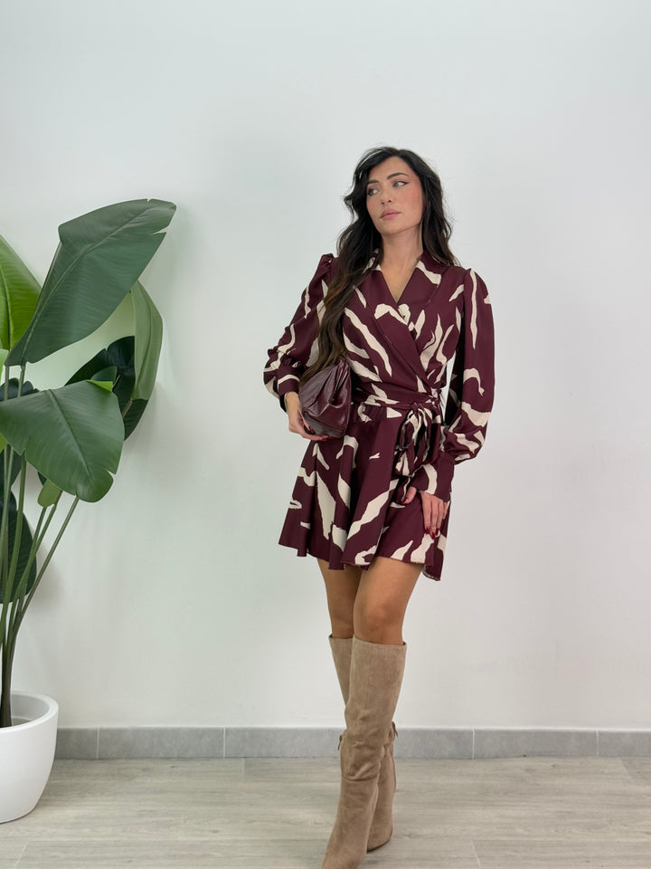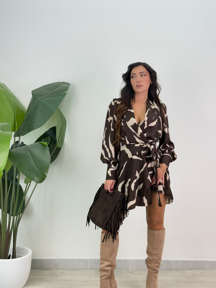 Abito corto a portafoglio realizzato in jersey di misto viscosa, con scollo a V incrociato, maniche lunga , cinta in vita. Perfetto per la tua quotidianità o per le tue occasioni! Non fartelo scappare!