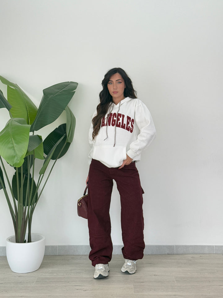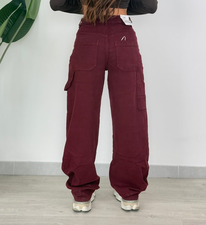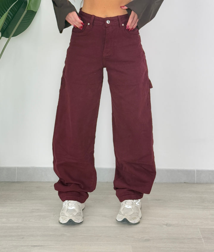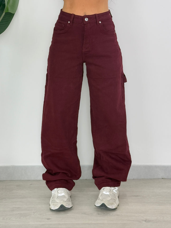 Jeans ballon bordeaux , Realizzato su tela semi elastica di qualitá con tasche e passanti per cintura, zip e bottone. Perfetto per qualsiasi outfit. Vestibilità regular.