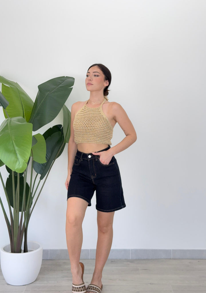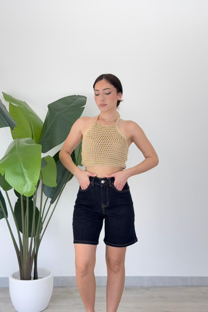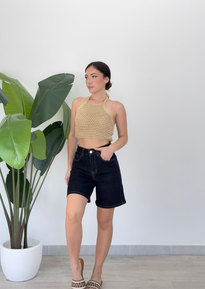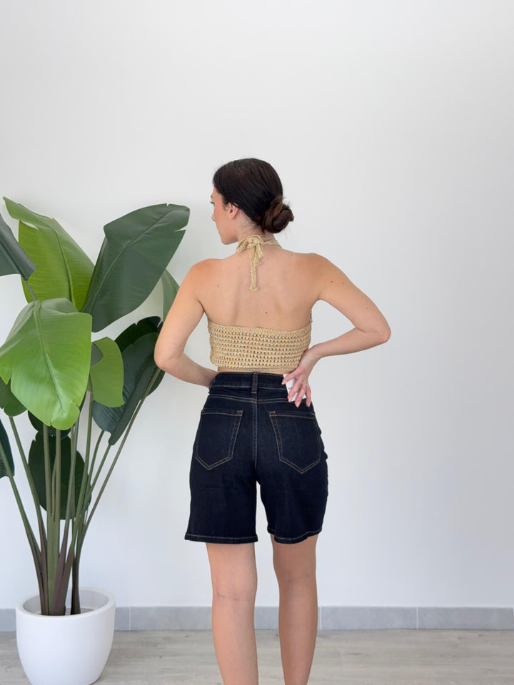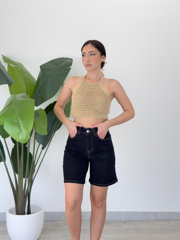 Scopri il bermuda Branwen! Realizzato su tela semi- elastica di qualitá con tasche e passanti per cintura, zip e bottone . Perfetto per qualsiasi outfit. Vestibilità regular.