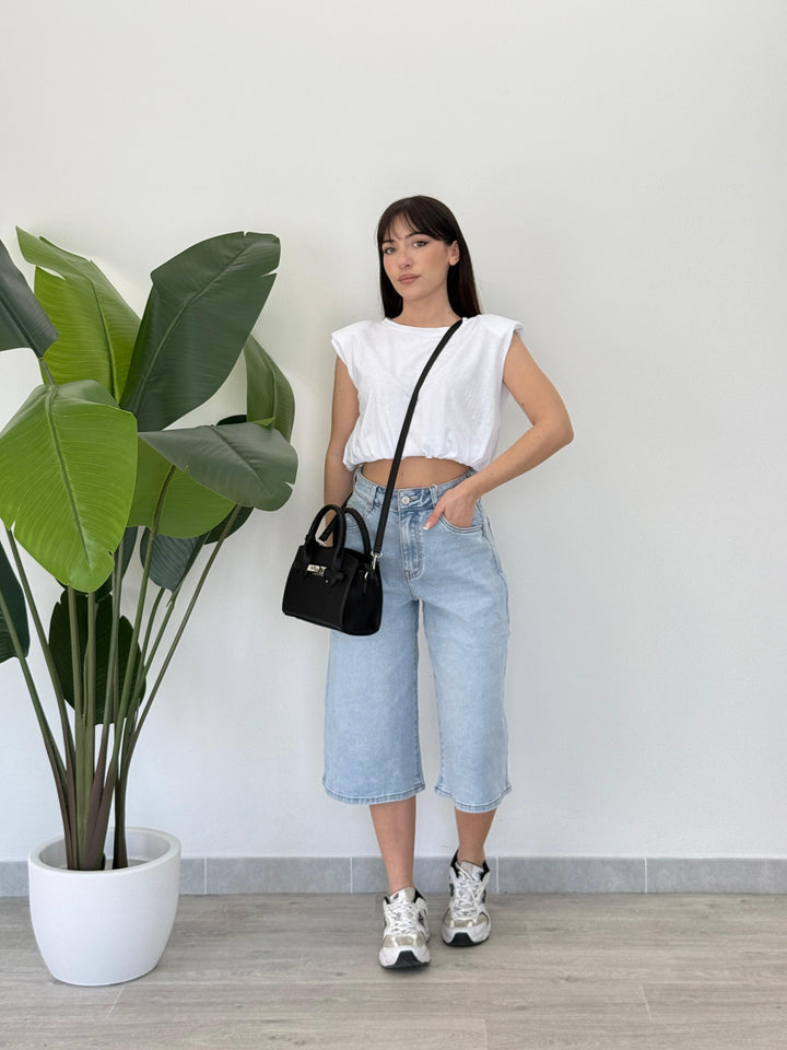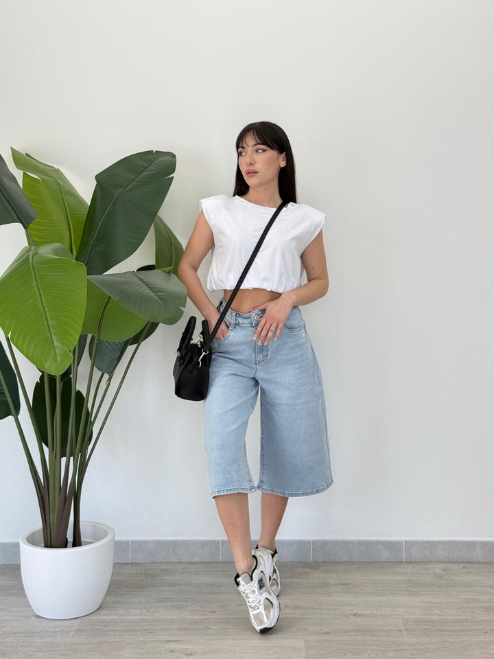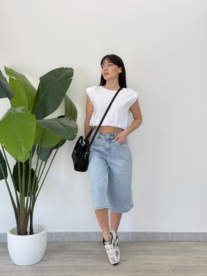 Scopri il Bermuda Gracy! Realizzato su tela semi- elastica di qualitá con tasche e passanti per cintura, zip e bottone . Perfetto per qualsiasi outfit. Vestibilità regular.