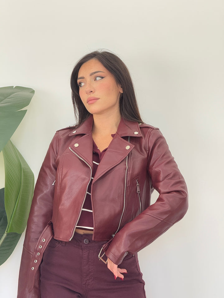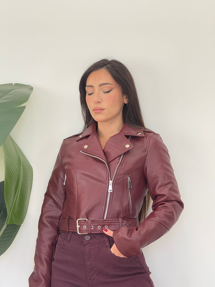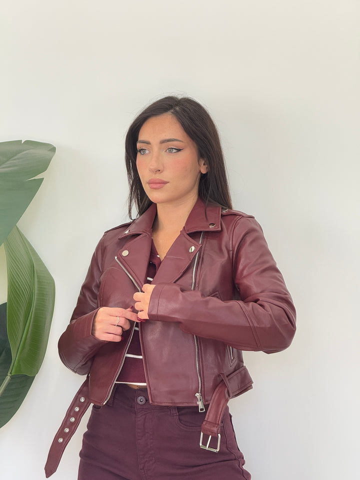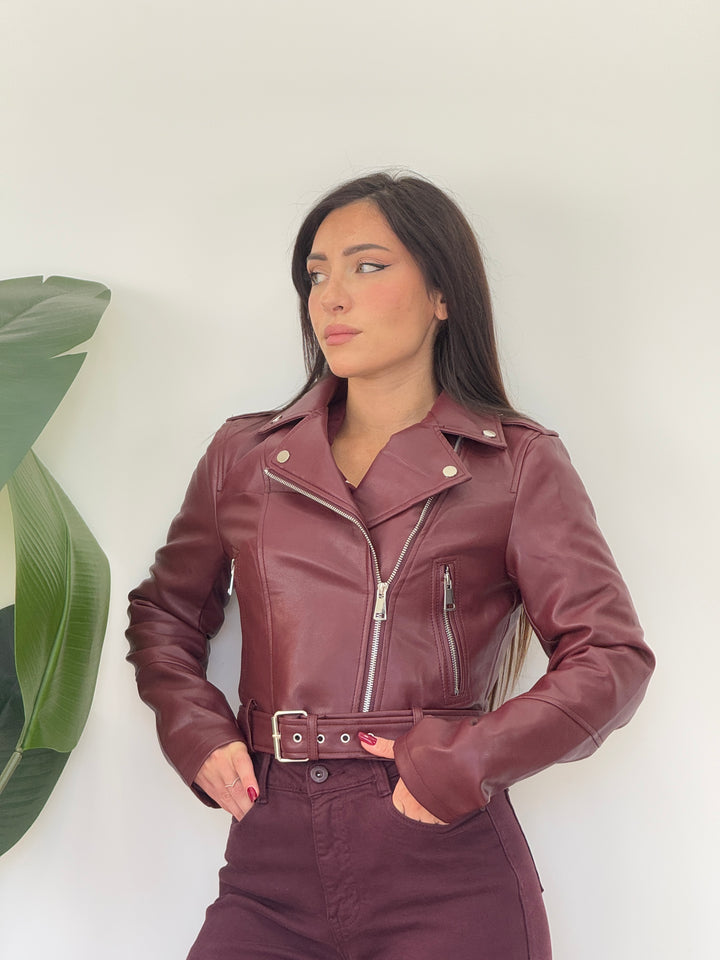 Scopri il biker Bordeaux! Fantastico Biker realizzato in ecopelle di qualità,foderato all’ interno . La sua cintura dona al look un tocco di classe in più. Versatile e pratico per qualsiasi outfit .Vestibiltá regolare