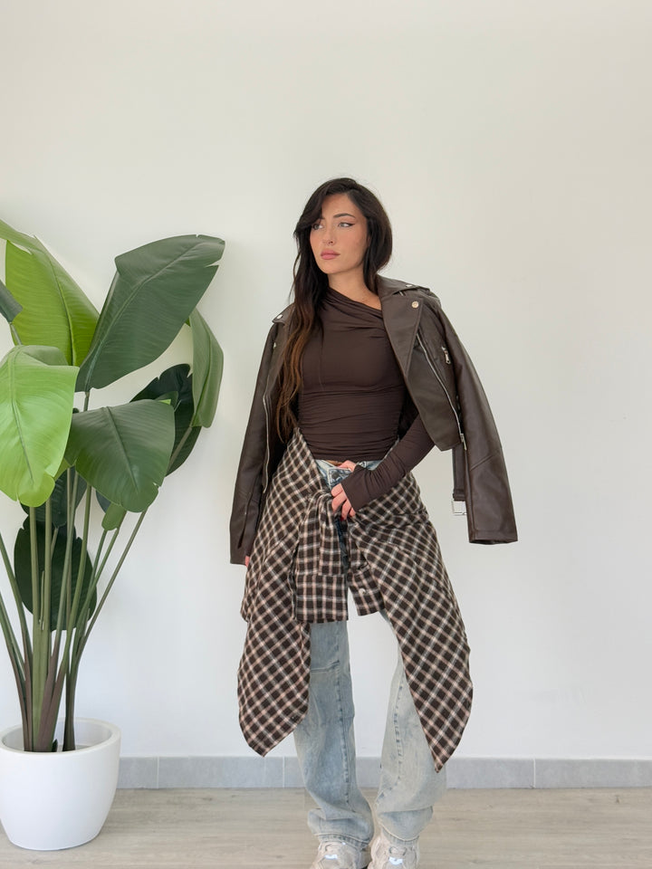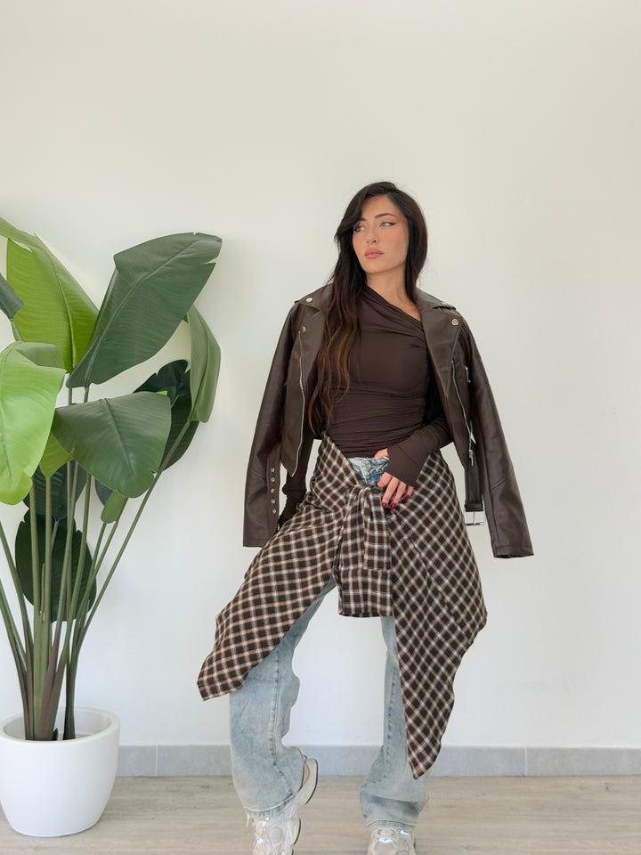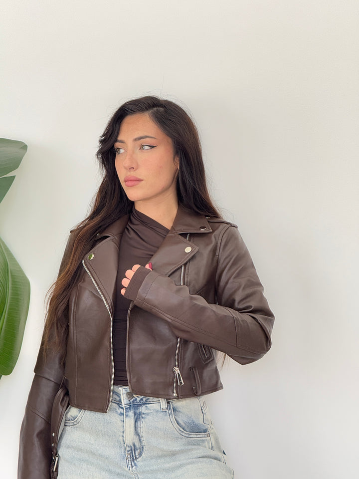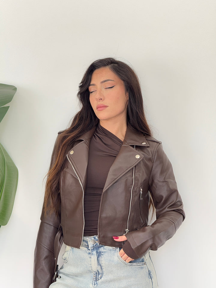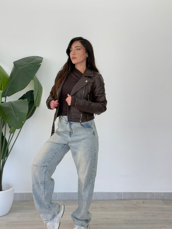 Scopri il biker Brown! Fantastico Biker realizzato in ecopelle di qualità,foderato all’ interno . La sua cintura dona al look un tocco di classe in più. Versatile e pratico per qualsiasi outfit .Vestibiltá regolare
