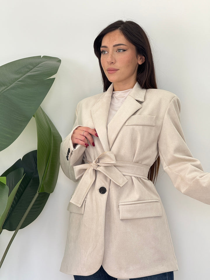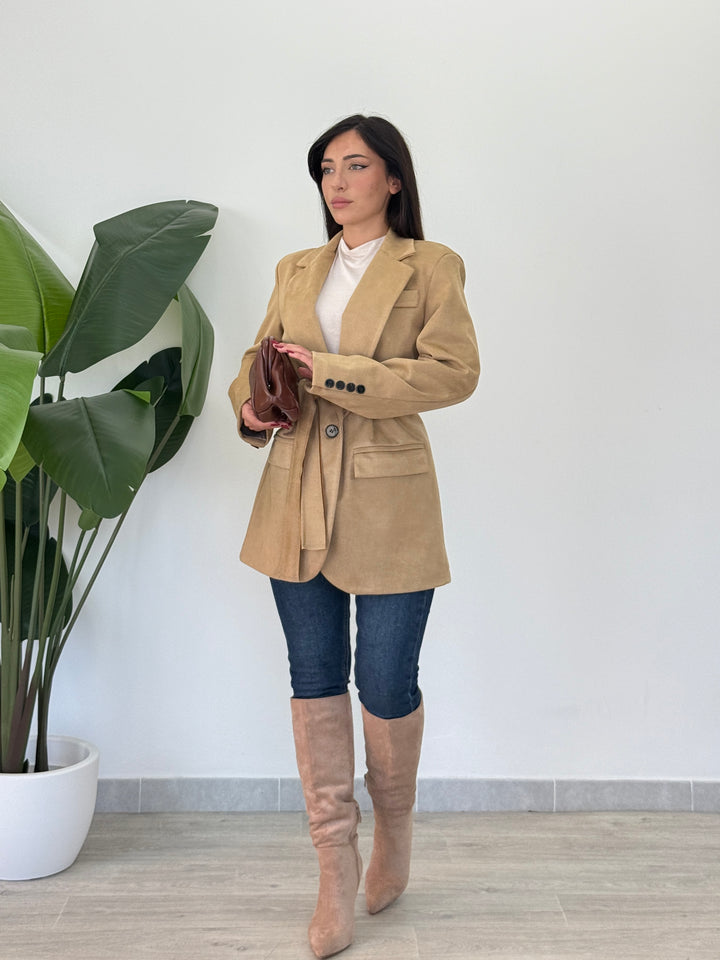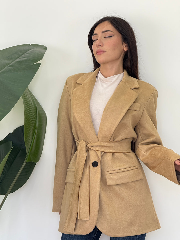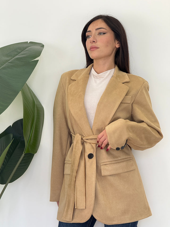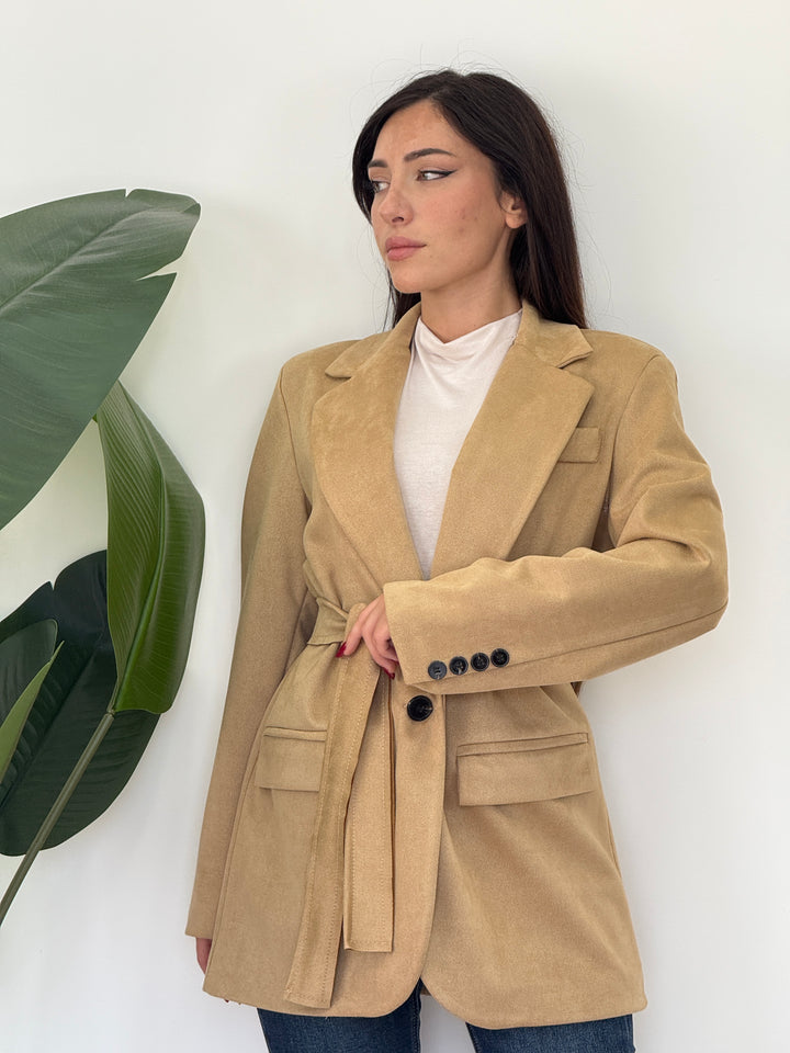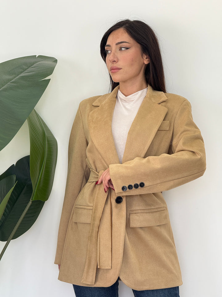 Blazer scamosciato Isabel, è il must have di stile di cui hai bisogno. Con revers a punta e due bottoni davanti; spalla dritta con spalline (rimovibili) , tasche davanti a doppio filetto con pattina e cintura rimovibile in vita! Adatto per ogni occasione Foderato all’interno.Non può assolutamente mancare nel tuo guardaroba! Vestibilitá Oversize