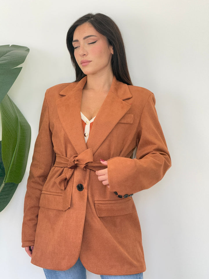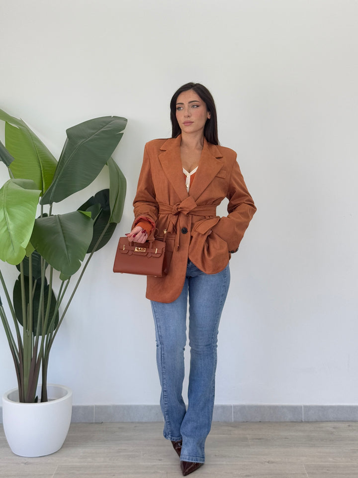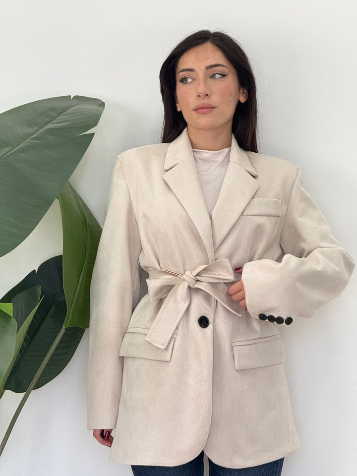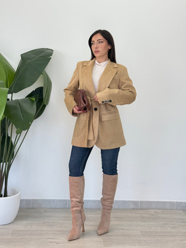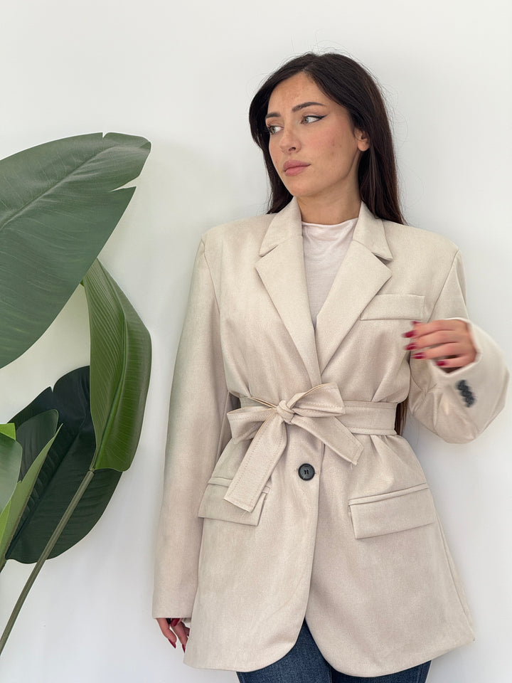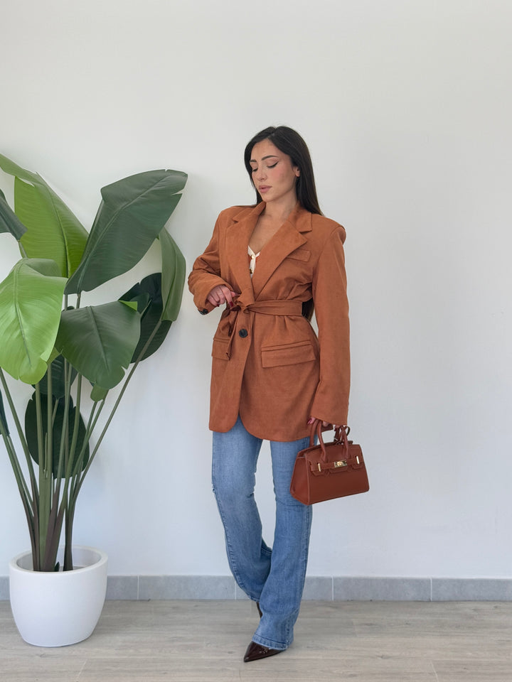Blazer scamosciato Isabel, è il must have di stile di cui hai bisogno. Con revers a punta e due bottoni davanti; spalla dritta con spalline (rimovibili) , tasche davanti a doppio filetto con pattina e cintura rimovibile in vita! Adatto per ogni occasione Foderato all’interno.Non può assolutamente mancare nel tuo guardaroba! Vestibilitá Oversize