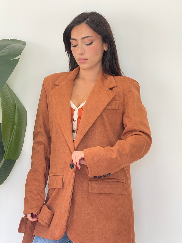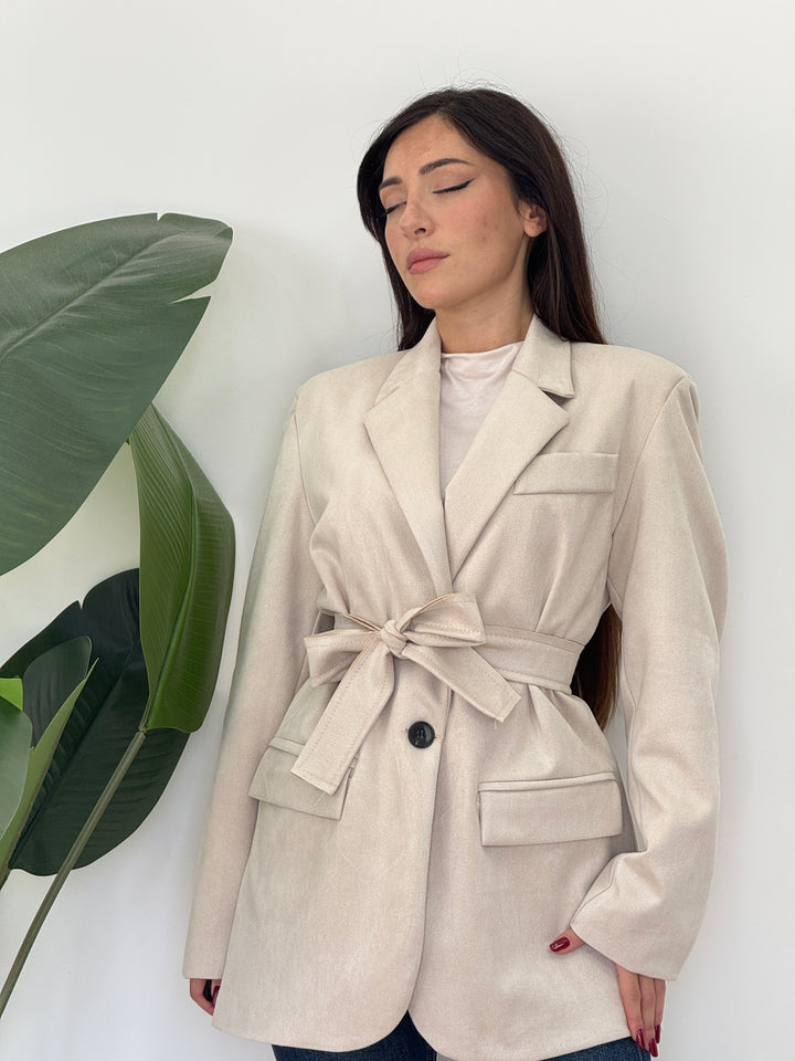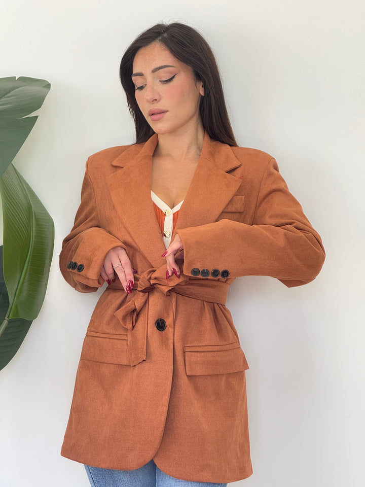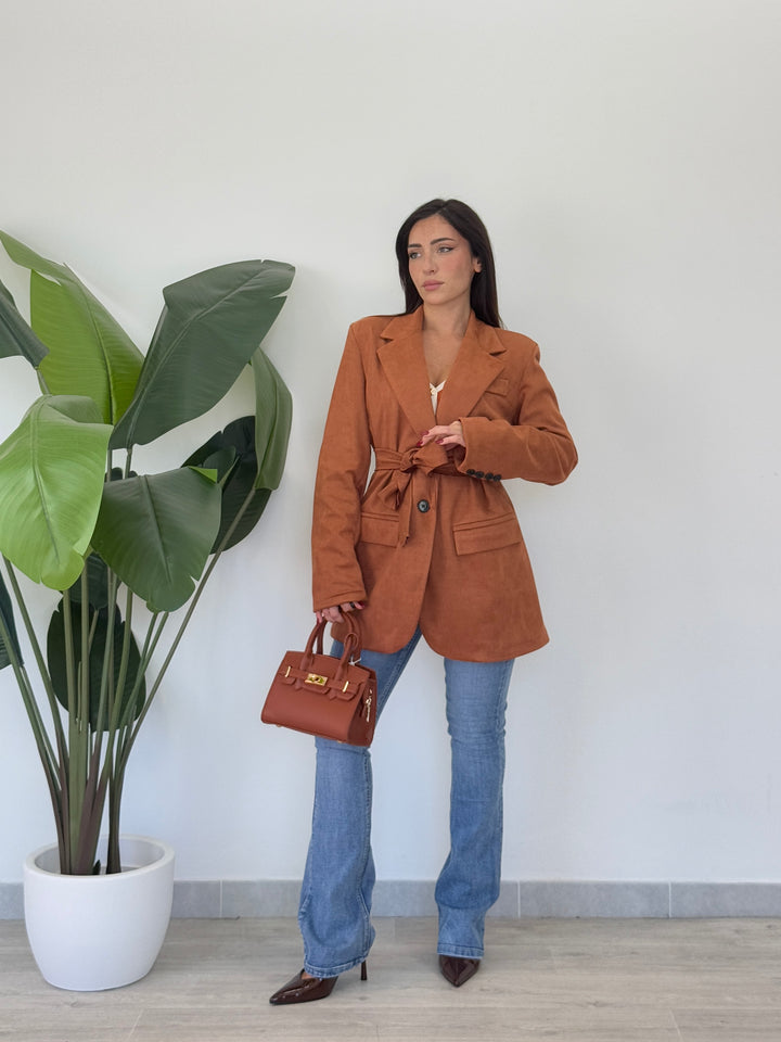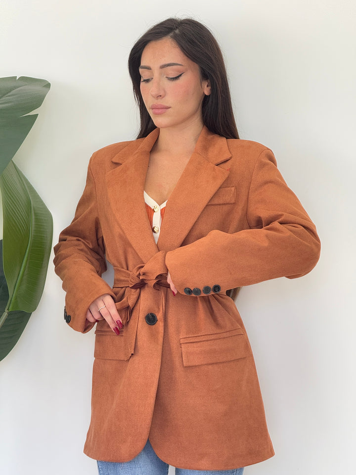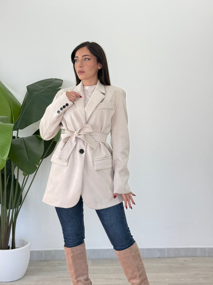 Blazer scamosciato Isabel, è il must have di stile di cui hai bisogno. Con revers a punta e due bottoni davanti; spalla dritta con spalline (rimovibili) , tasche davanti a doppio filetto con pattina e cintura rimovibile in vita! Adatto per ogni occasione Foderato all’interno.Non può assolutamente mancare nel tuo guardaroba! Vestibilitá Oversize