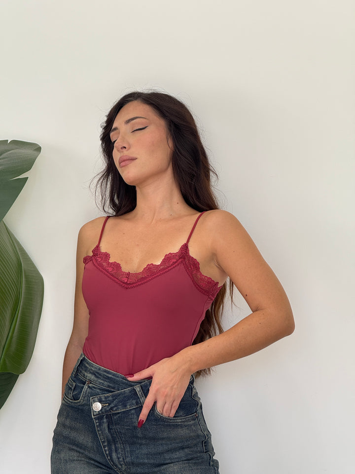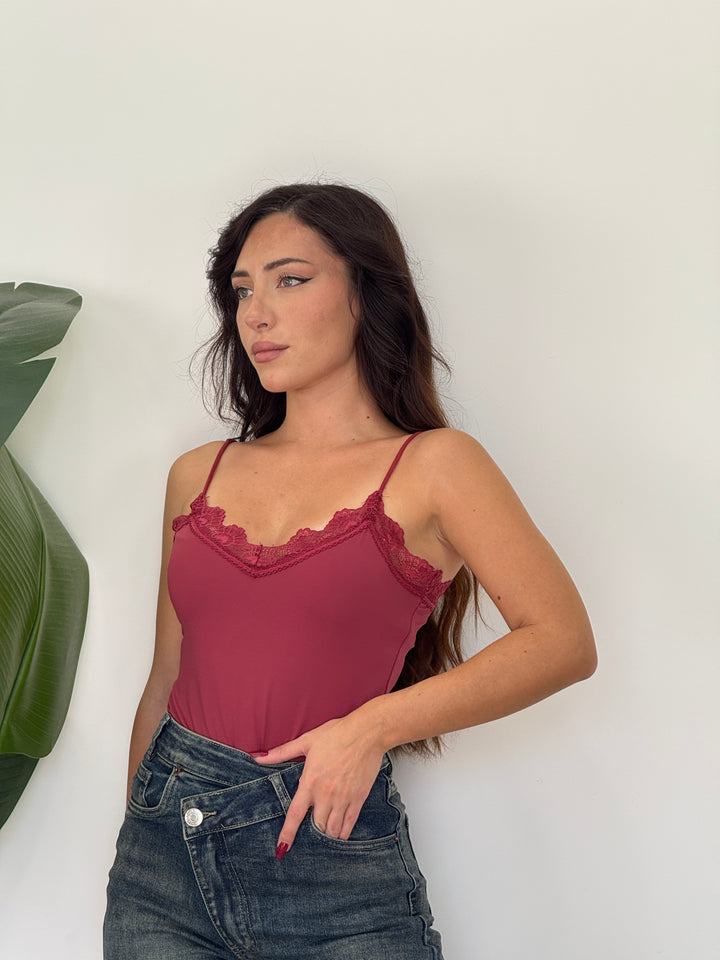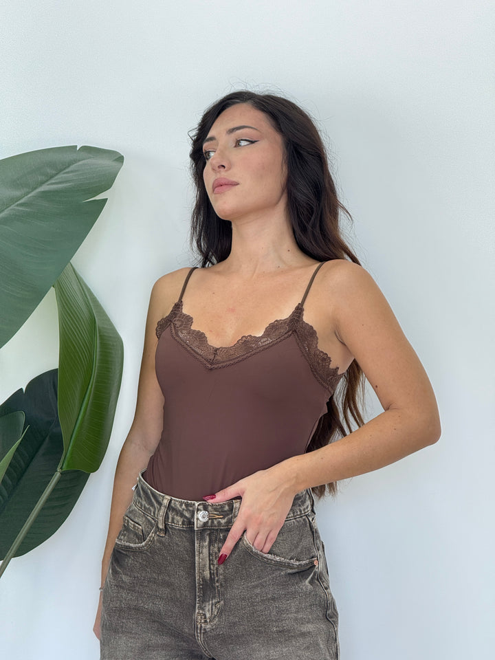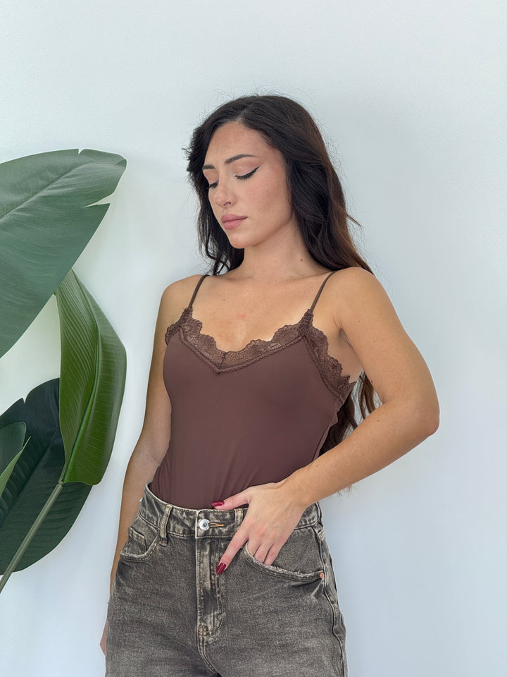 Scopri il body Loreyne! Body con scollo e ricamo in pizzo, con spalline sottili, elegante e femminile.