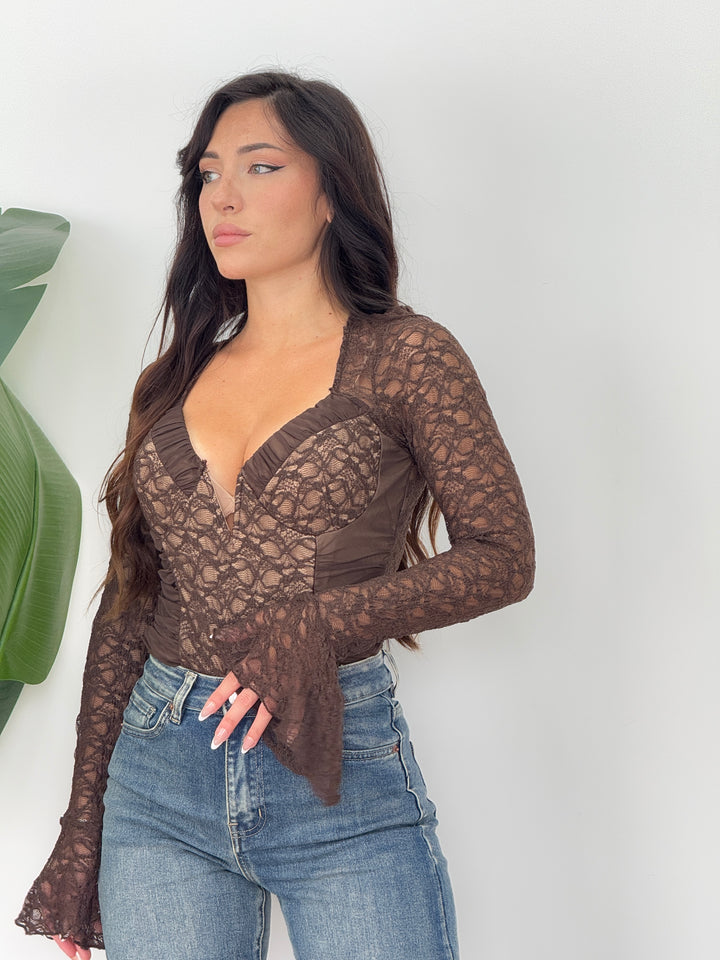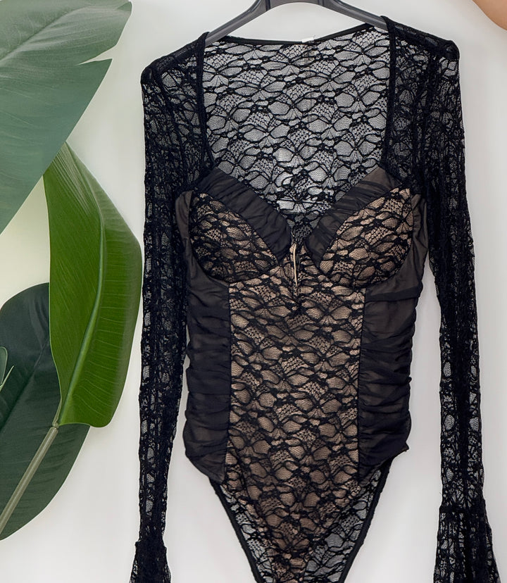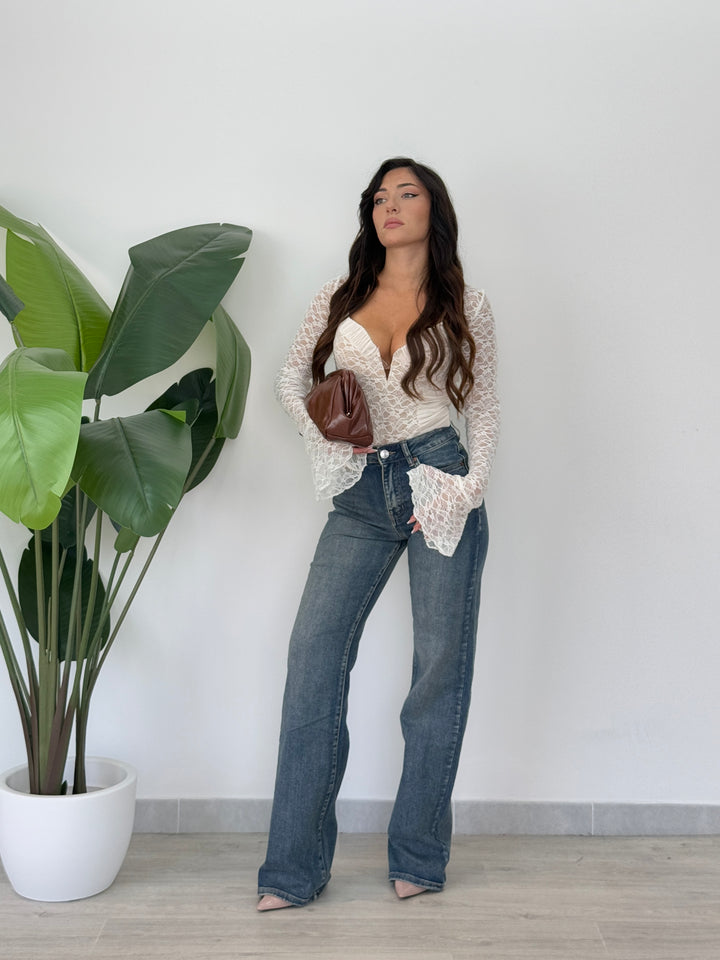 Body in pizzo con coppe preformate, scollo a V con ferretto e maniche leggermente a pipistrello. Perfetto per ogni occasione ma soprattutto per essere unica . Vestibilitá elastica