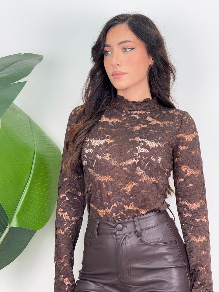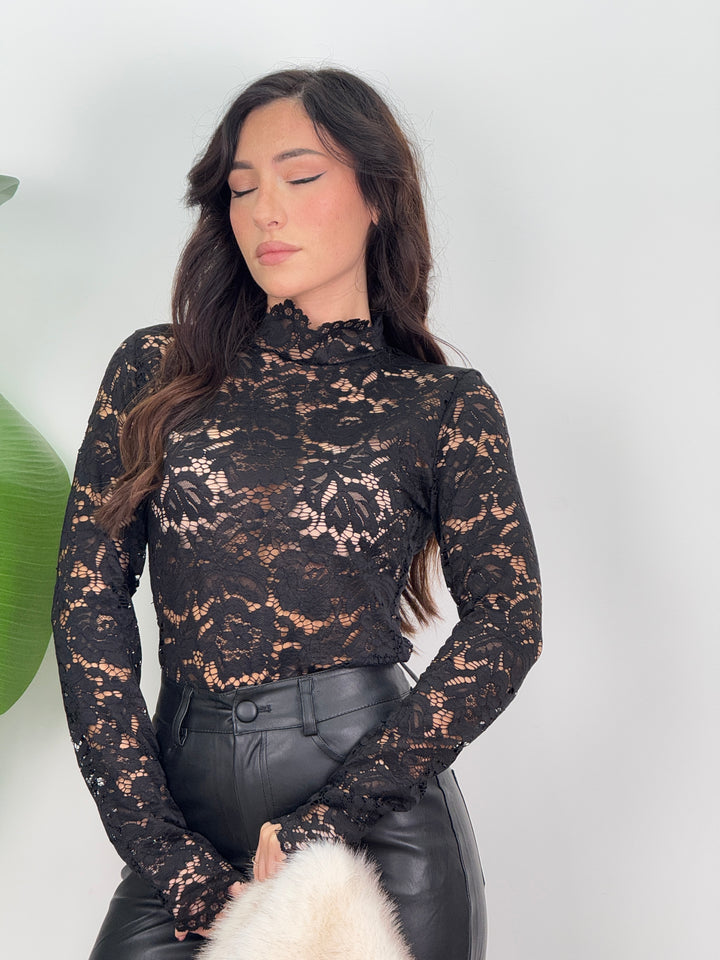 Scopri il Body pizzo Roxy! Body a maniche lunghe in pizzo con motivo floreale trasparente, collo leggermente alto e vestibilità aderente. Perfetto per ogni look!
