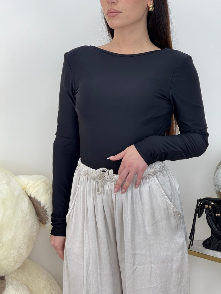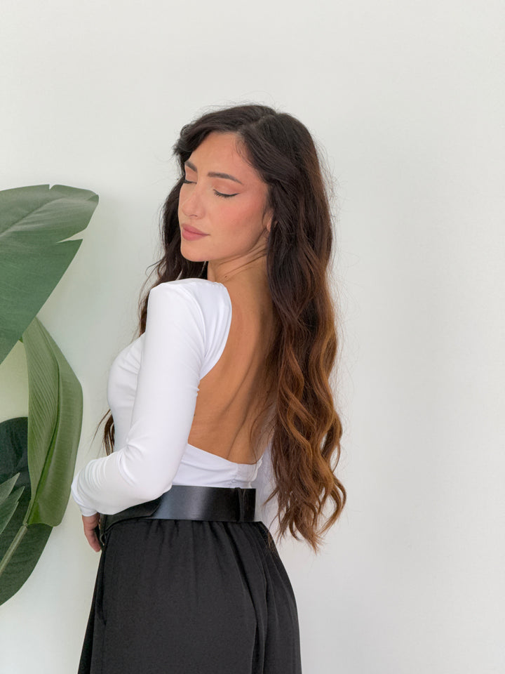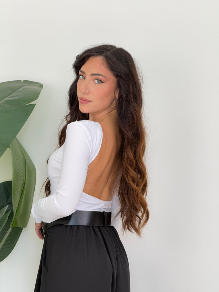 Body realizzato su lycra di qualitá con scollo sulla schiena. Perfetto per qualsiasi outfit dallo stile street,casual a quello elegante.Vestibilitá elastica