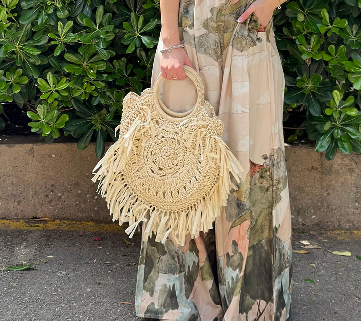 Borsa in paglia con manico rigido