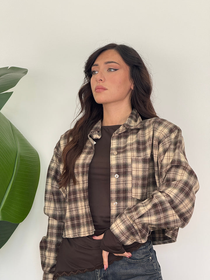Scopri la camicia oversize crop ! Camicia in flanella over presenta colletto classico, bottoni frontali. Ha una vestibilità comoda e ampia. Perfetta per un look semplice ma curato.