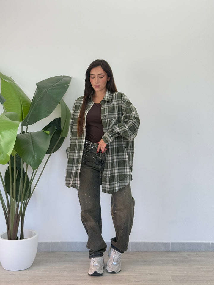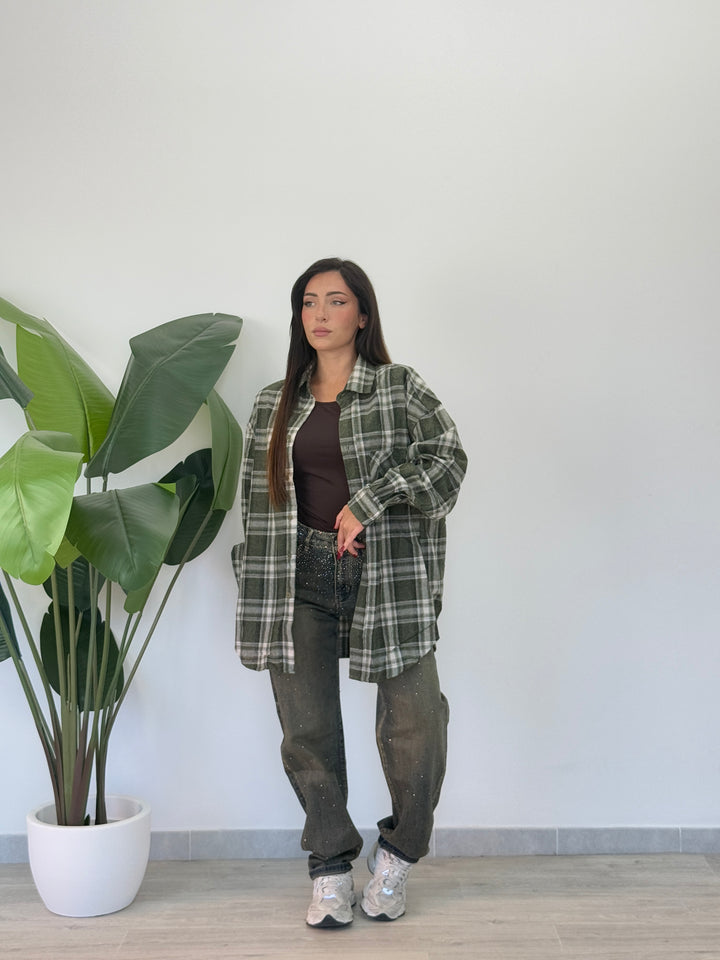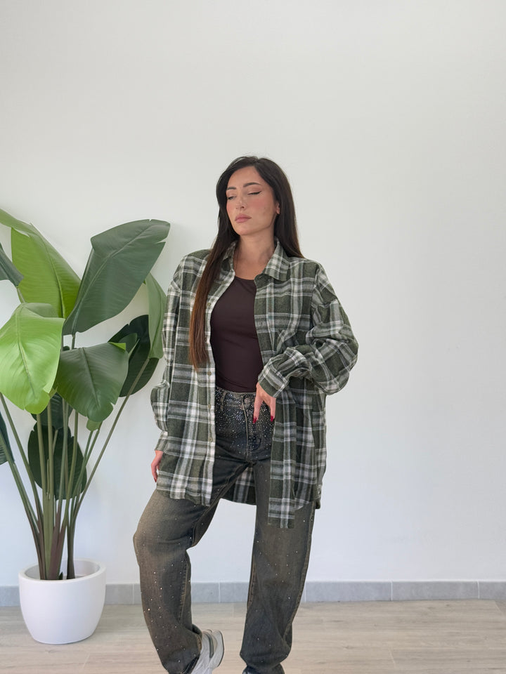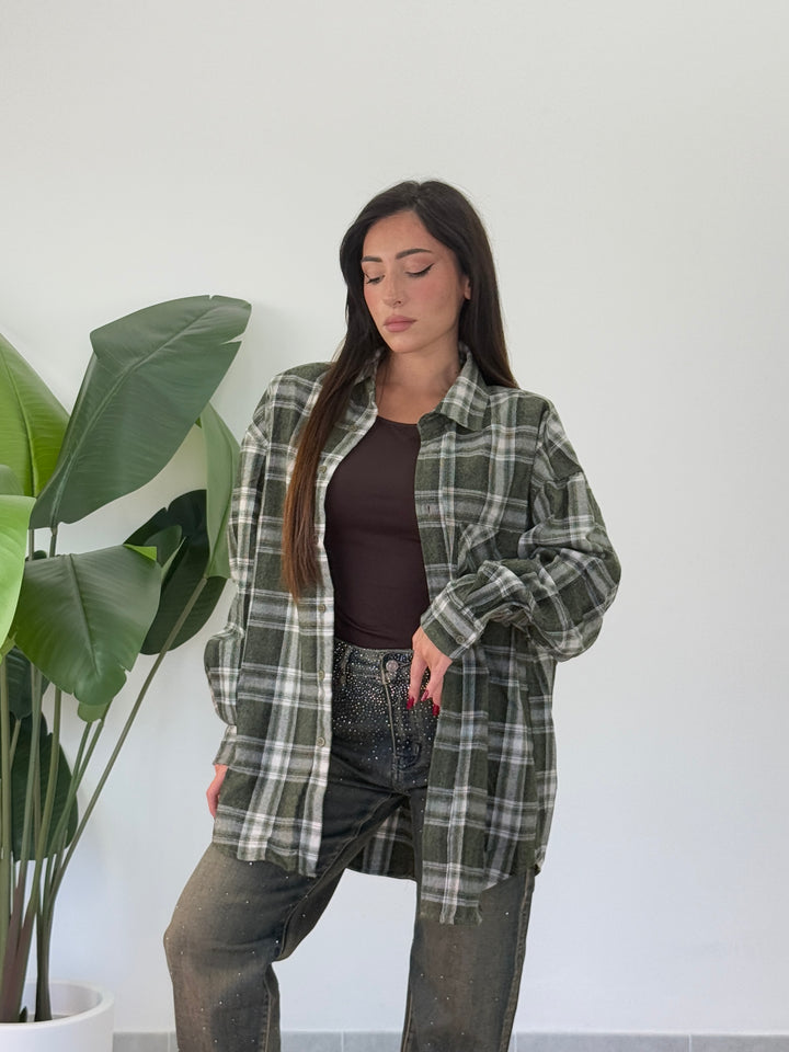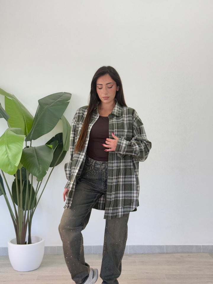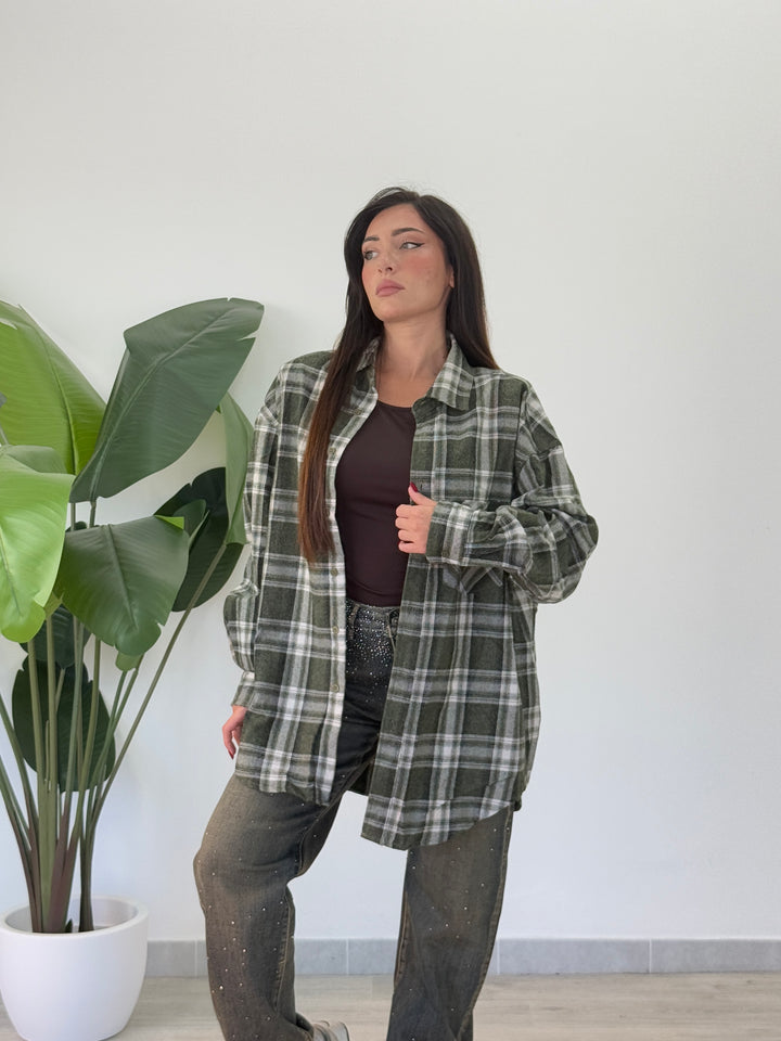 Camicia in simil flanella oversize , chiusura con veri bottini centrali e manica lunga . Vestibilitá oversize Ha una vestibilità comoda e ampia.