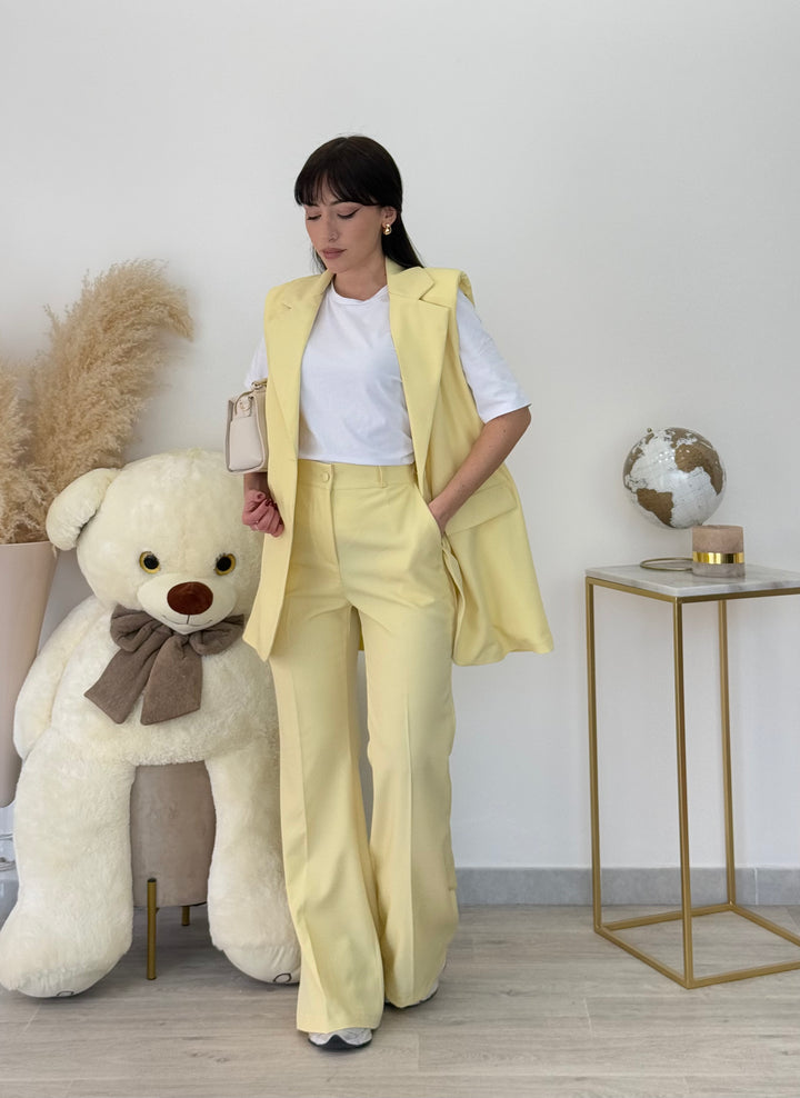 Pantalone a zampa vita alta con elastico sul retro, bottone e zip. Perfetto per le tue occasioni speciali.
