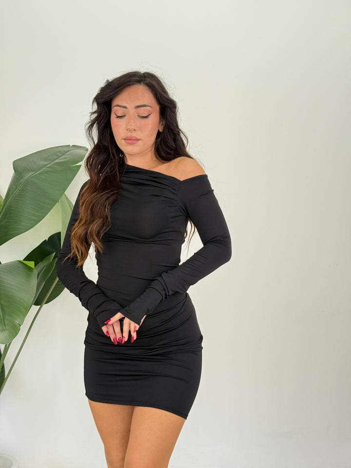 Scopri il nostro abitino Roxanne corto ;un capo fashion Realizzato in lycra di qualità elasticizzata che esalta la tua femminilità. abitino con scollo asimmetrico e spacco laterale .Perfetto per ogni occasione .Vestibilità elastica.