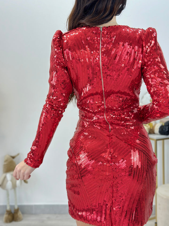 Il Dress Oriana è un capo di abbigliamento in paillettes esclusivo e di classe. Abito con ampio scollo e gonna con orlo a tulipano . Vestibiltà elasticizzata.