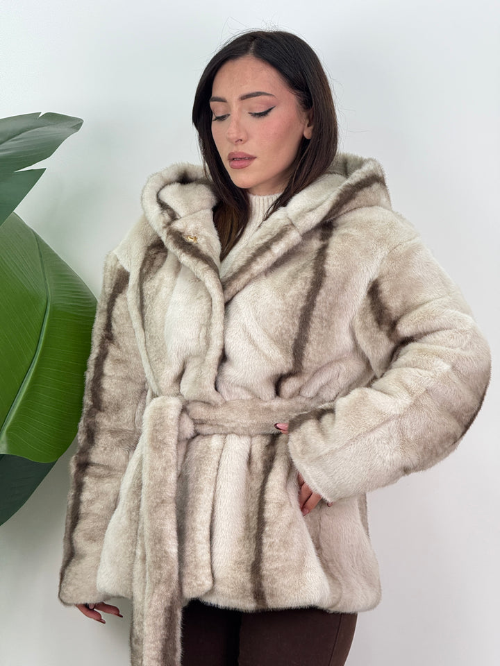 Scopri il nostro Eco Visone Antardite . Visone ecologico di qualità eccellente pari al vero. Eco visone con cappuccio,cintura in vita rimovibile, foderato all’interno(100%poliestere). Perfetto per qualsiasi occasione.