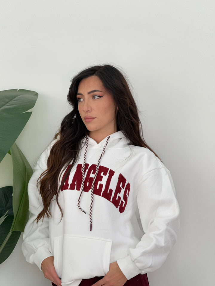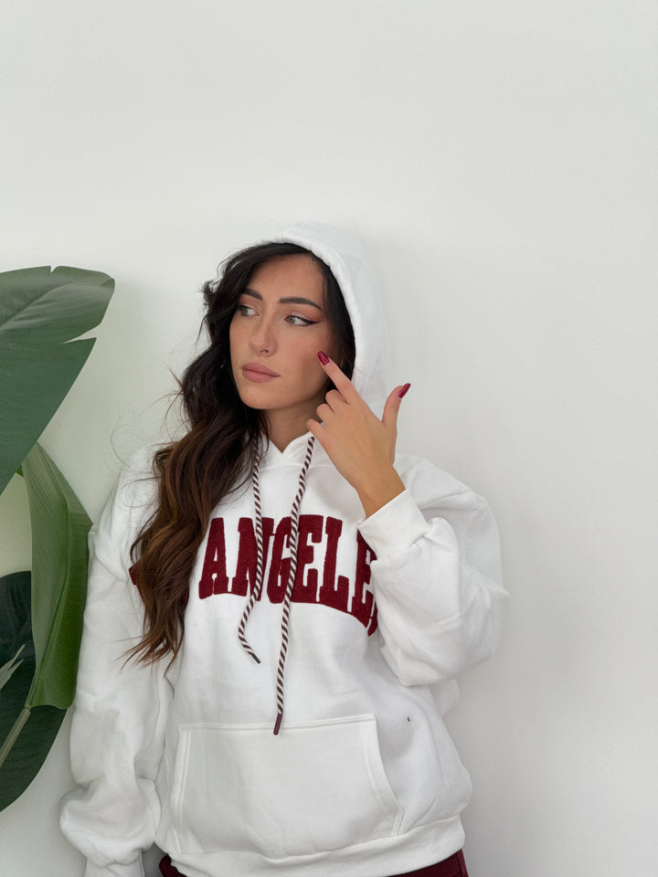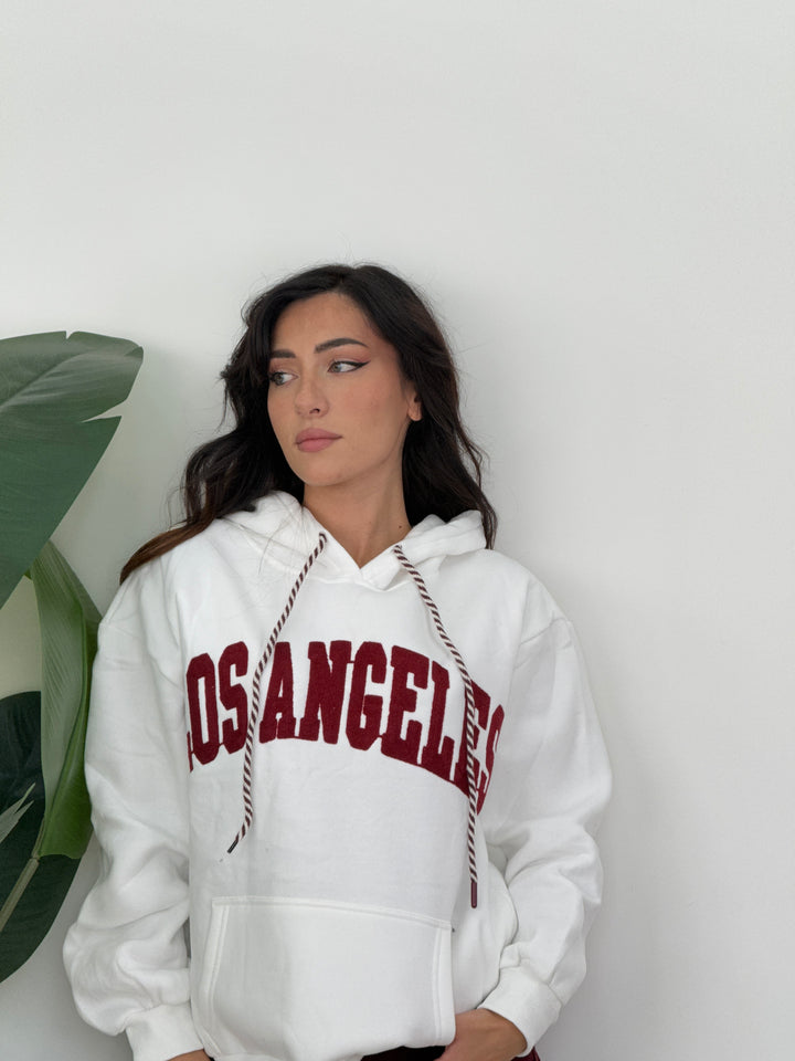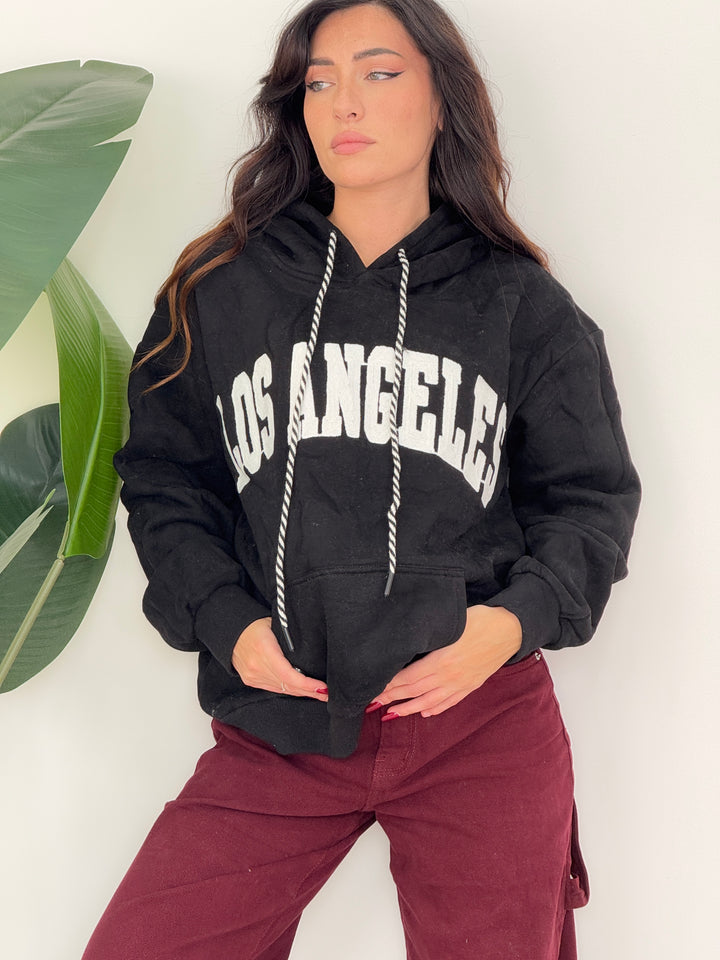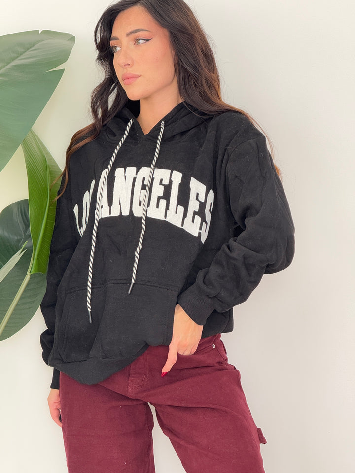 Lasciati abbracciare dalla nostra felpa Los Angeles . Realizzata in morbido tessuto pesante, felpata all’interno, per una sensazione avvolgente di caldo confort.Vestibilità semi~oversize. Ideale per la stagione invernale.