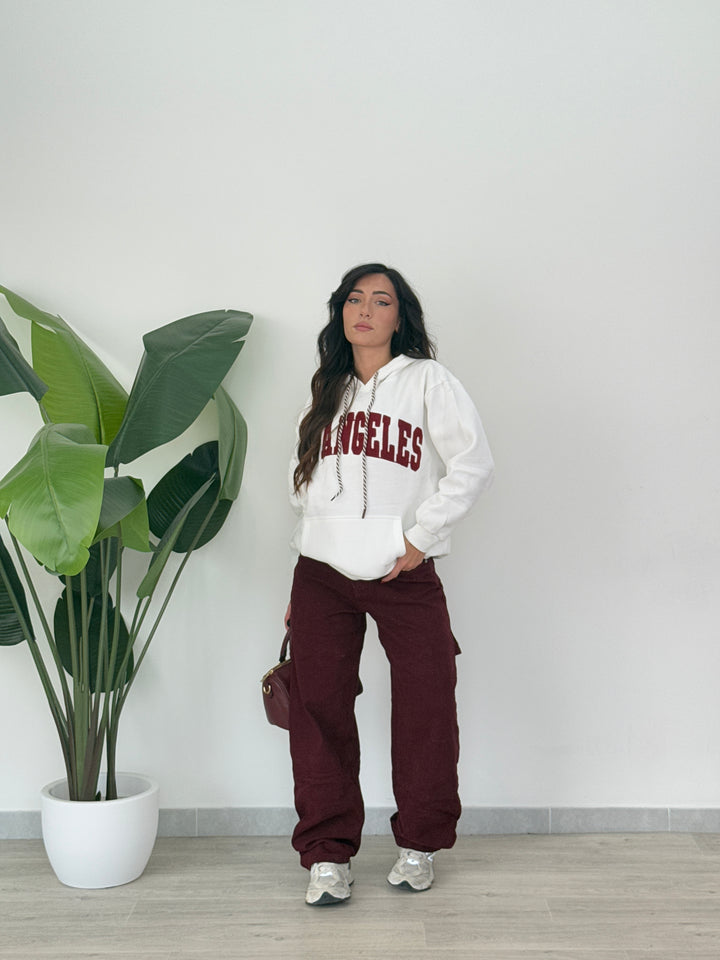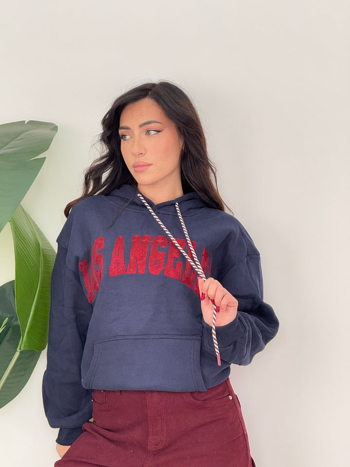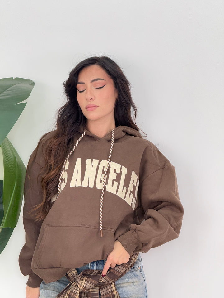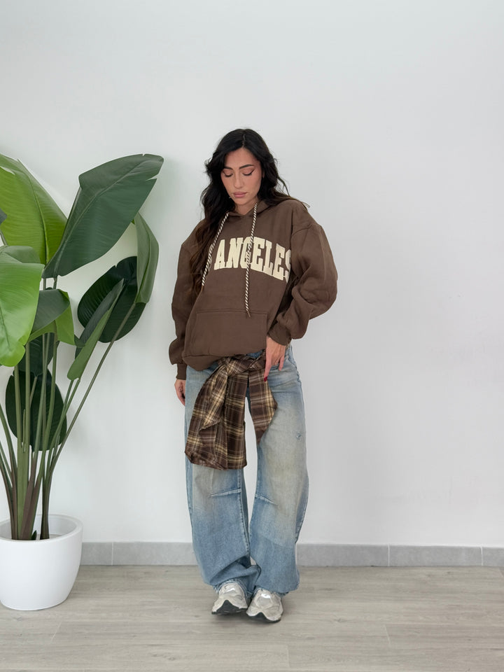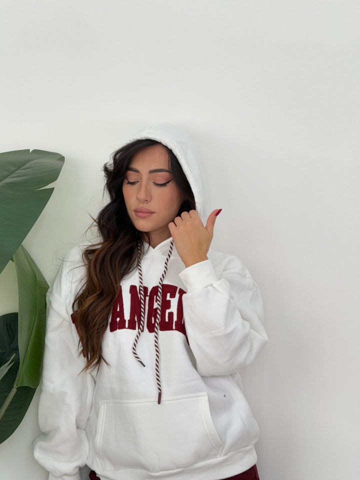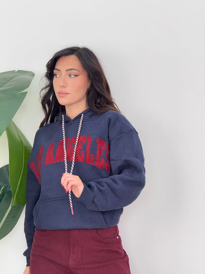 Lasciati abbracciare dalla nostra felpa Los Angeles . Realizzata in morbido tessuto pesante, felpata all’interno, per una sensazione avvolgente di caldo confort.Vestibilità semi~oversize. Ideale per la stagione invernale.