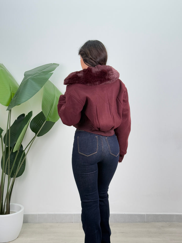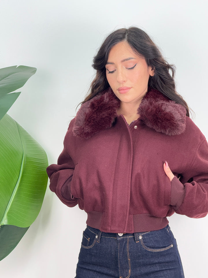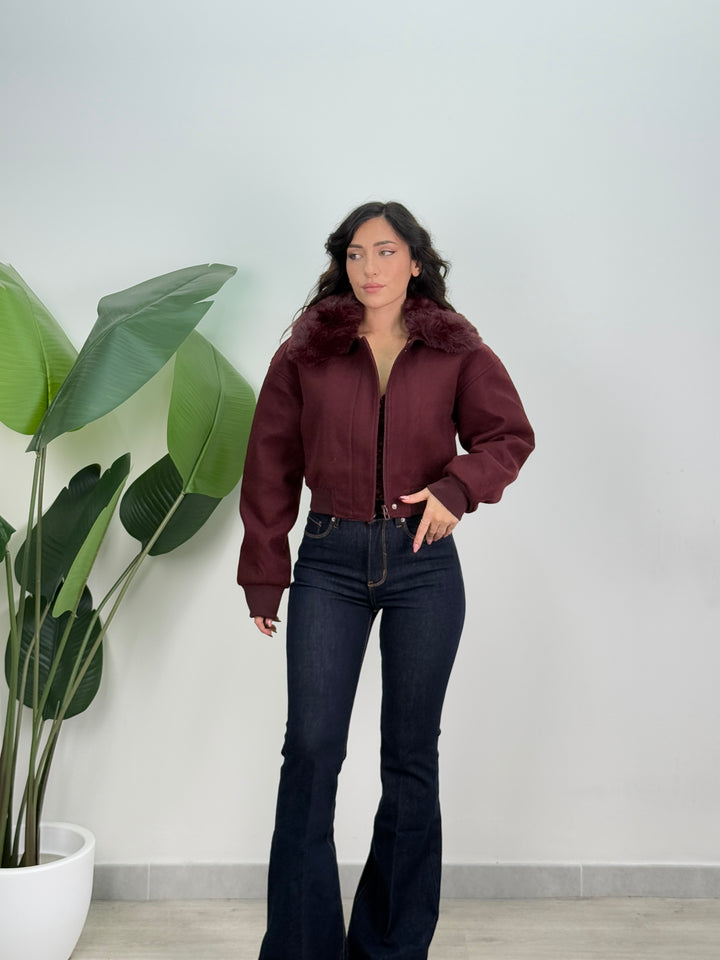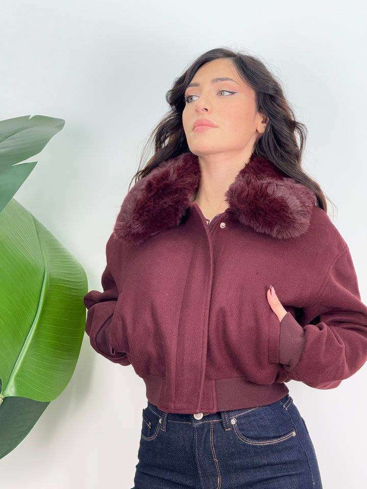 Giacca in tessuto, con elegante collo in pelliccia tono su tono. Presenta chiusura frontale, polsini e fondo elasticizzati per un fit confortevole e moderno, ideale per le giornate fredde.