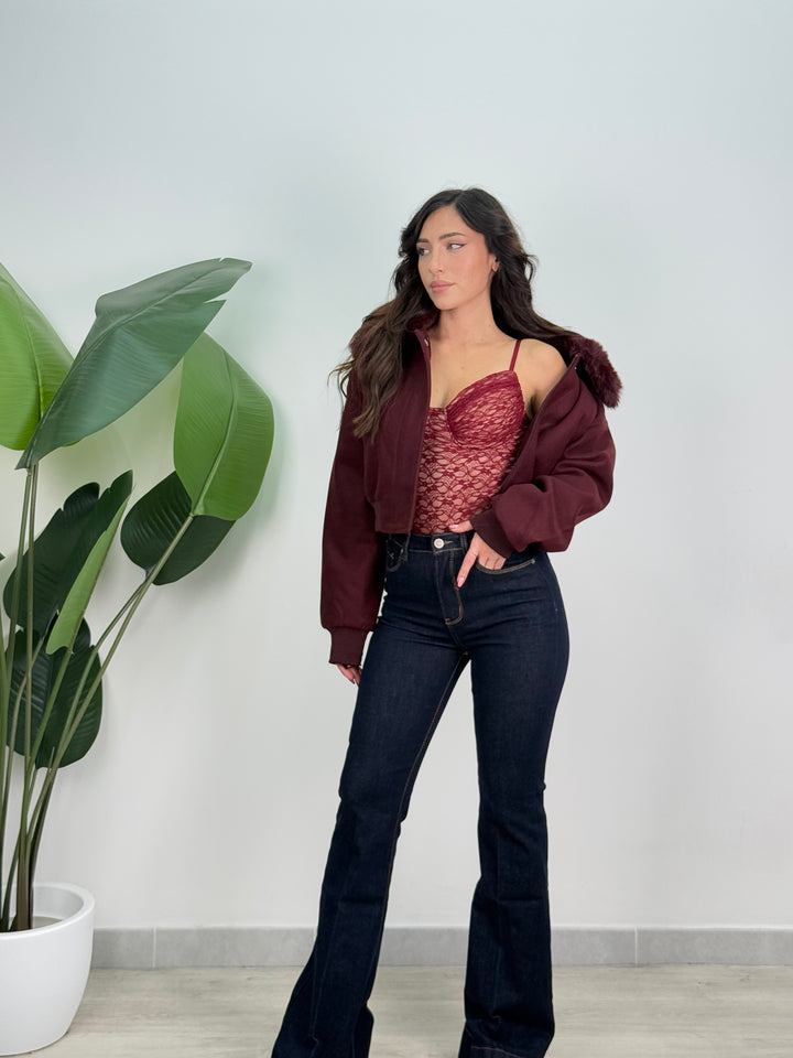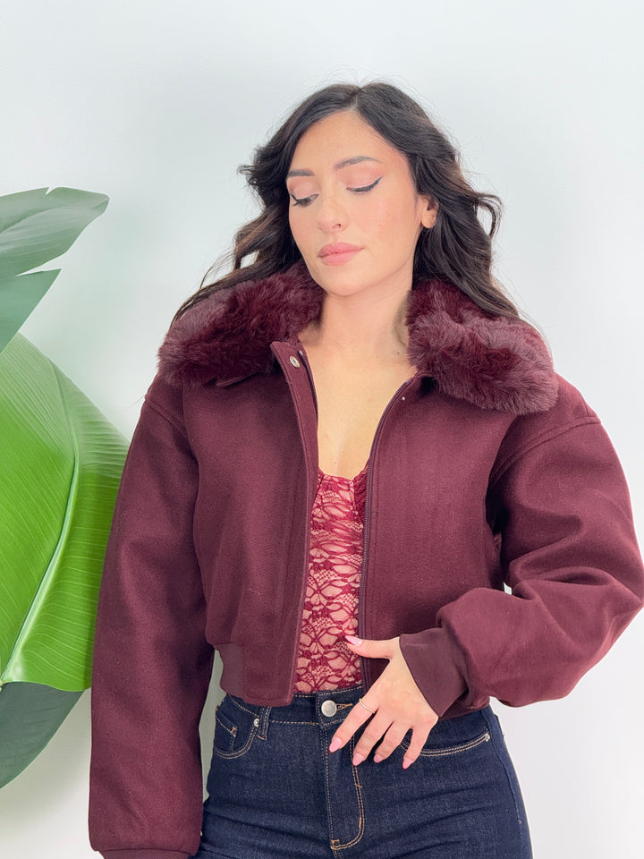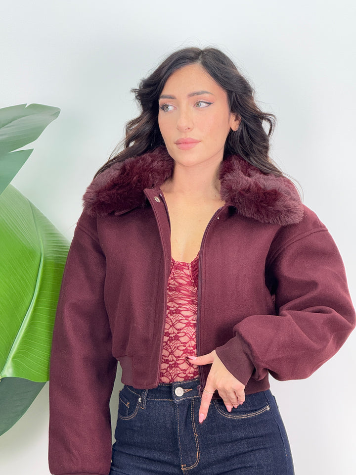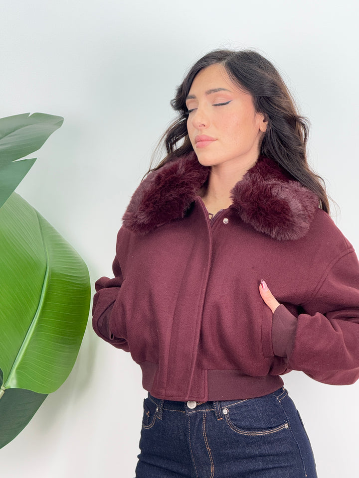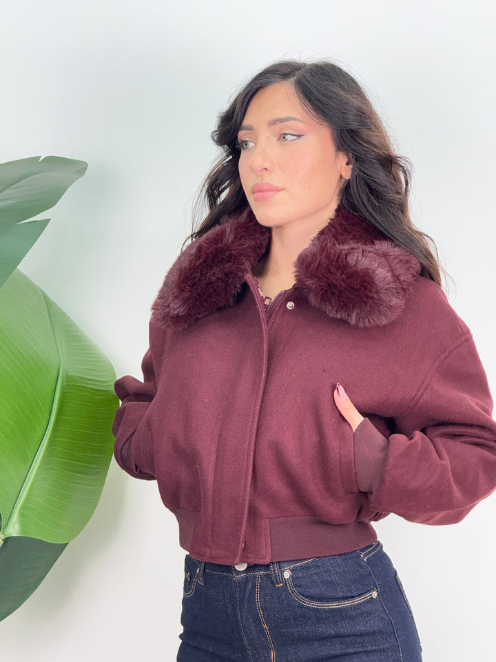 Giacca in tessuto, con elegante collo in pelliccia tono su tono. Presenta chiusura frontale, polsini e fondo elasticizzati per un fit confortevole e moderno, ideale per le giornate fredde.