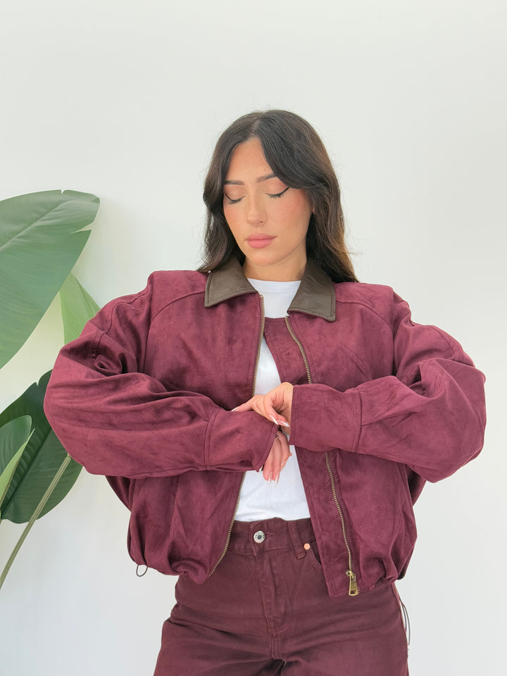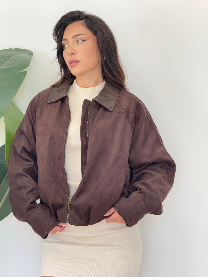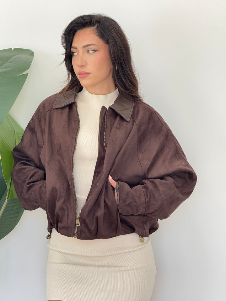 Scopri la Giacca Breeze Urban! Giacca scamosciata con colletto in ecopelle, presenta elastici regolabili sui lati per personalizzare la lunghezza e ottenere un look crop, con zip centrale, foderata all’ interno . Perfetta per uno look moderno e di tendenza. Vestibilità semi-over