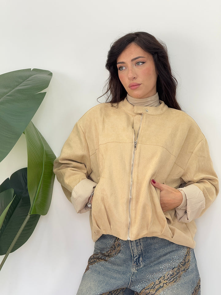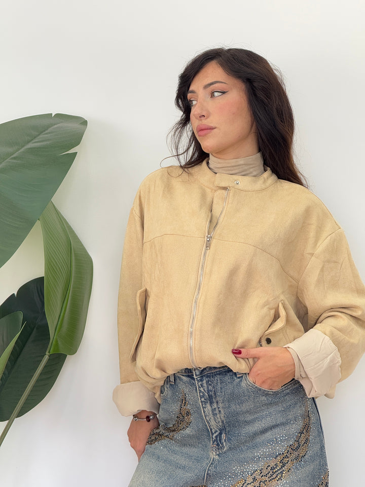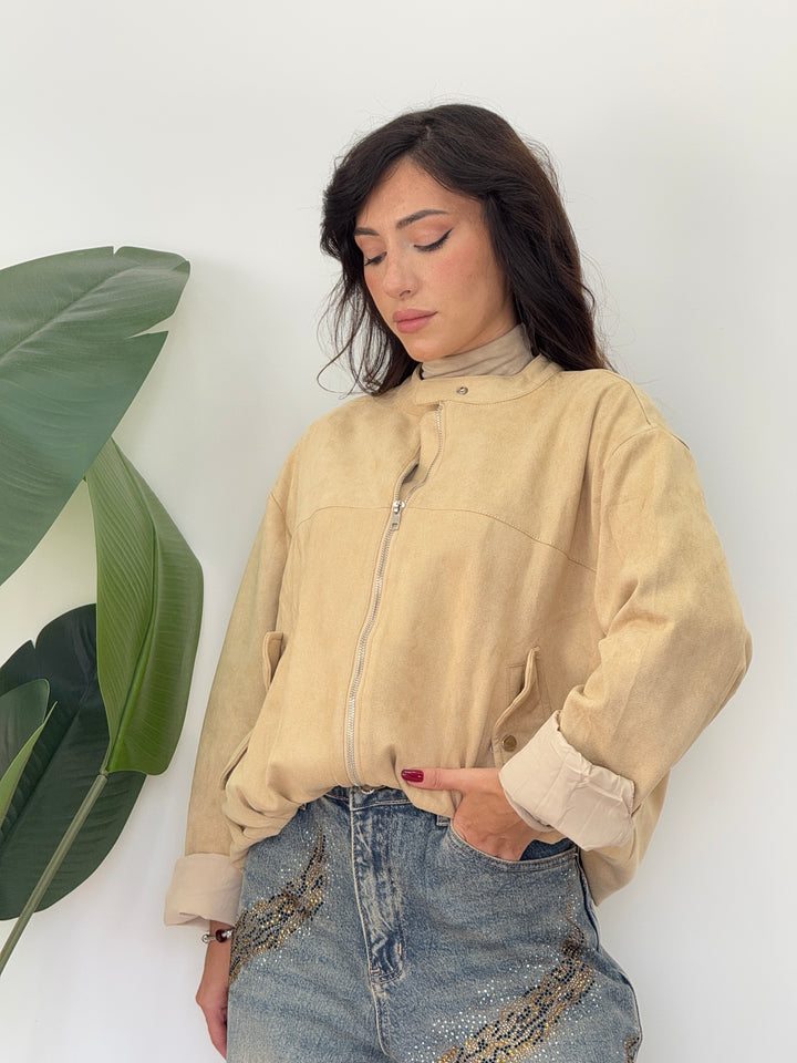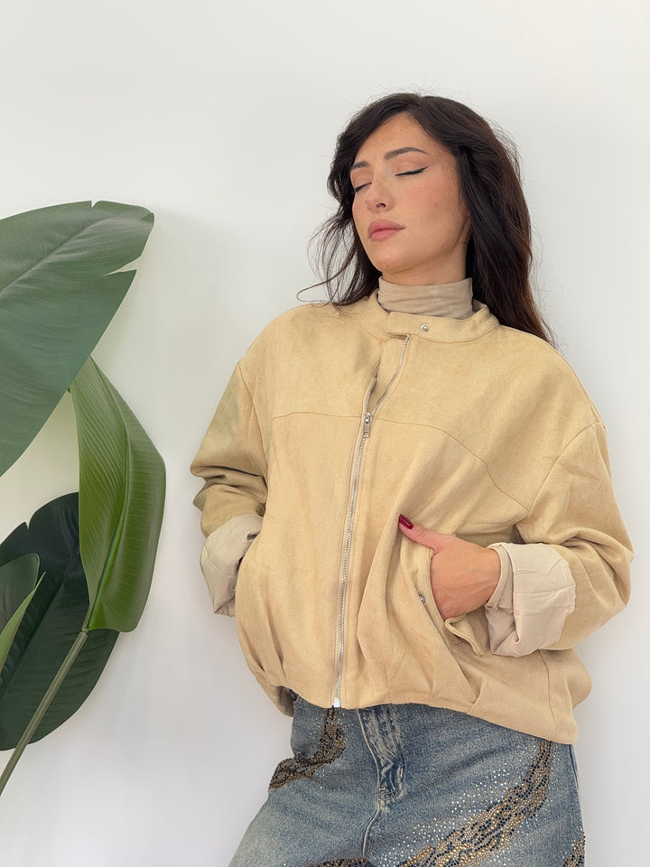 Scopri la giacca suede Georgia! Giacca scamosciata con chiusura e zip frontale , colletto con bottone a clip e due tasche , foderato all’ interno. Perfetta per ogni tuo outfit!Non può mancare un capo del genere nel tuo guardaroba! Vestibilità regular