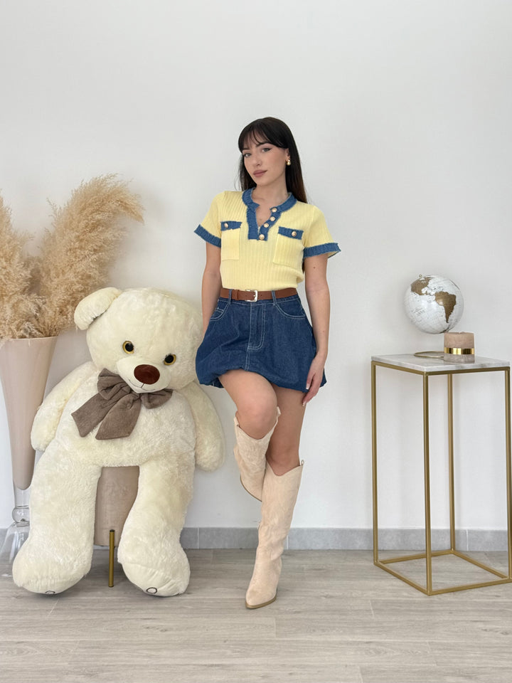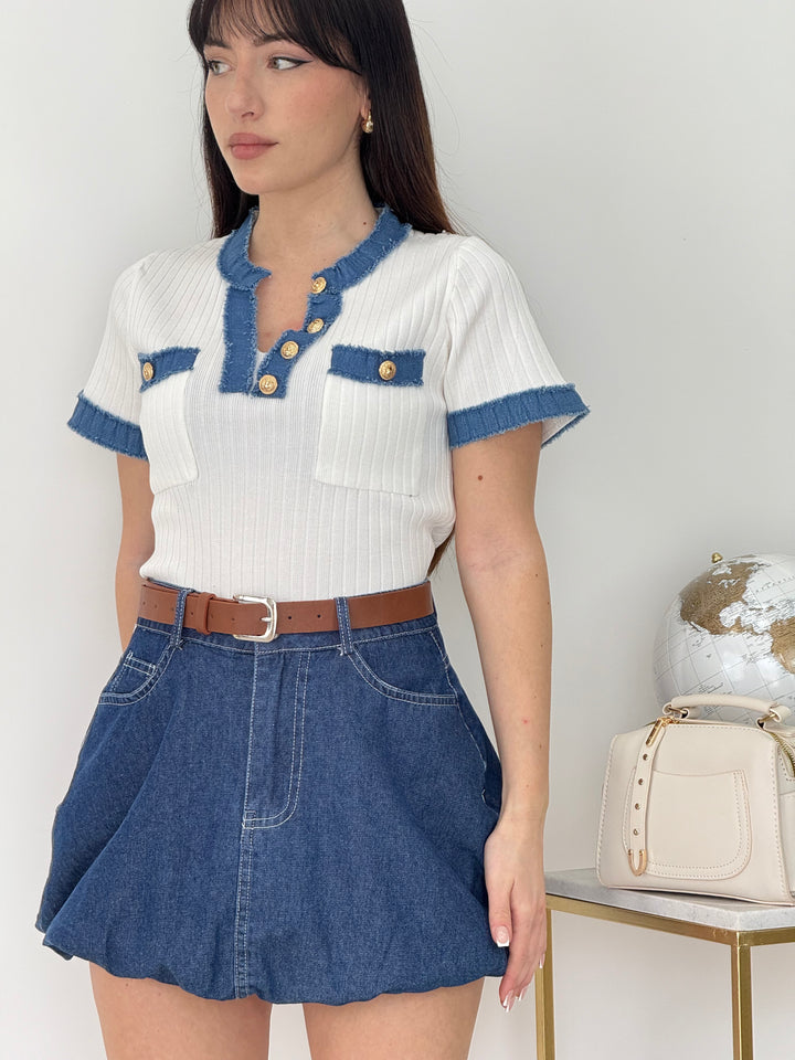 Gonna a palloncino realizzata in denim con tasche e cintura.