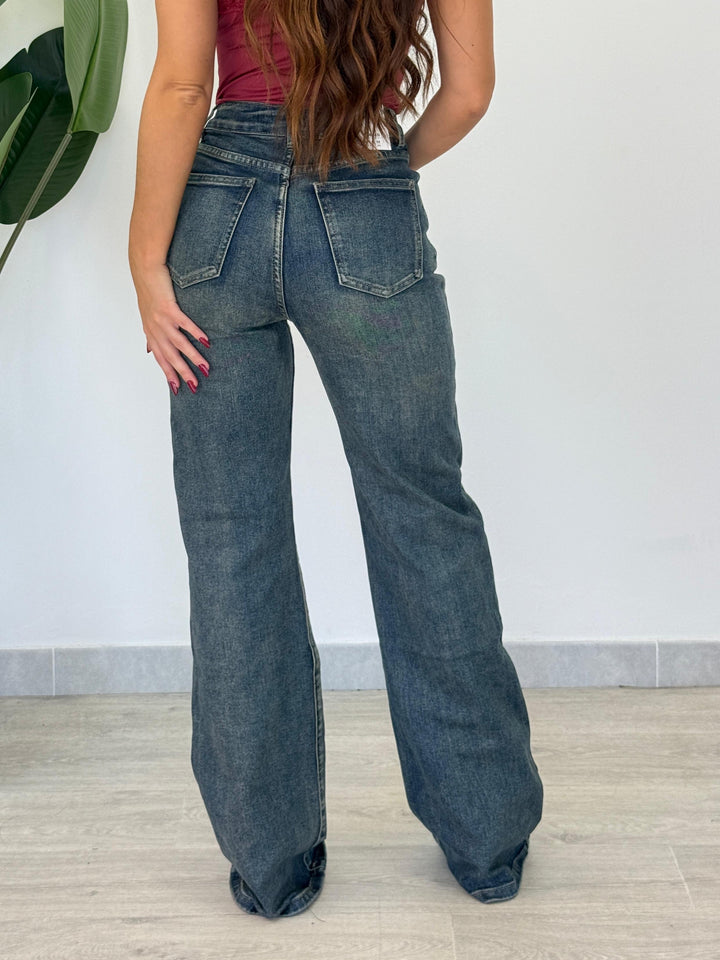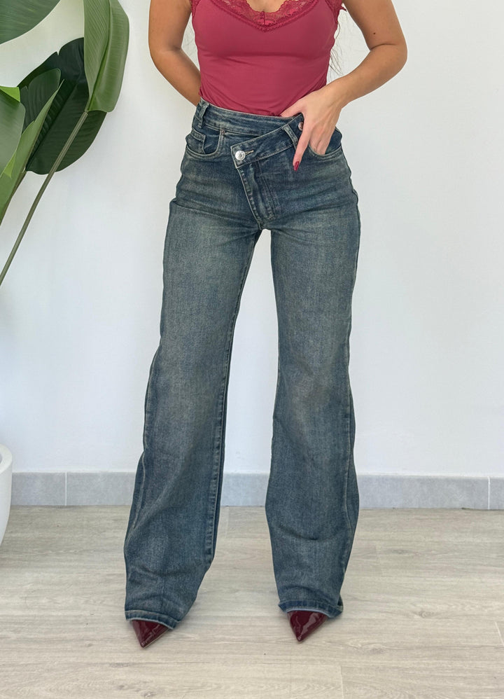 Jeans wide leg chiusura asimmetrica, offre un fit spettacolare . Realizzati in denim di qualità su tela fissa, passanti in vita e chiusura centrale con bottone e cerniera. È ideale per ogni tuo outfit. Vestibiltà regular