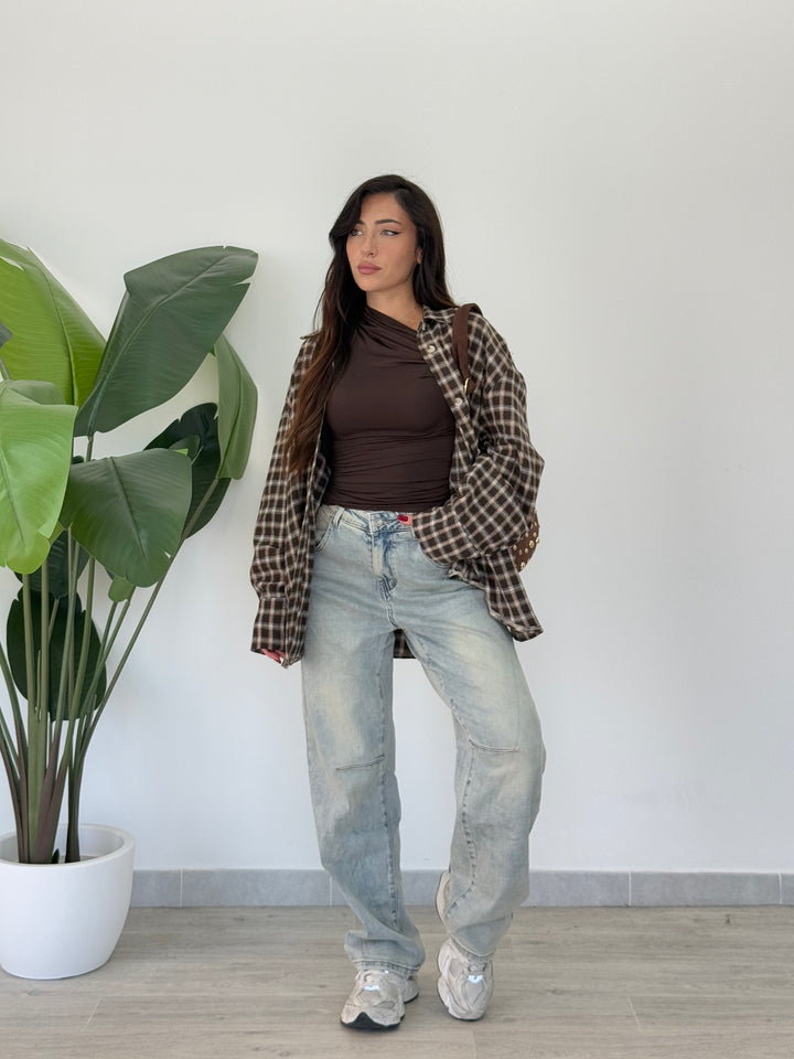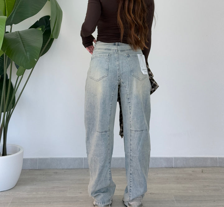 Jeans modello ballon , Denim Realizzato su tela elastica di qualitá con tasche e passanti per cintura, zip e bottone. Perfetto per qualsiasi outfit. Vestibilità elasticizzata.