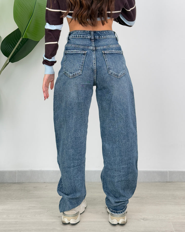 Scopri il Jeans balloon Avery! Realizzato su tela semi elastica di qualitá con tasche e passanti per cintura, zip e bottone. Perfetto per qualsiasi outfit. Vestibilità regular.