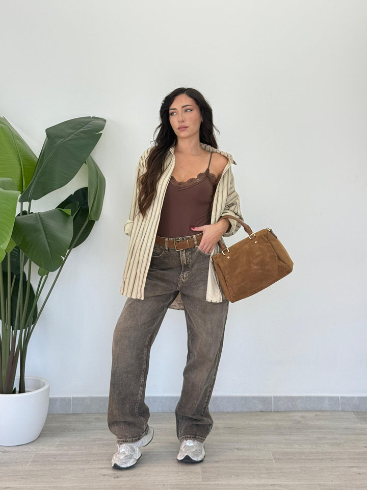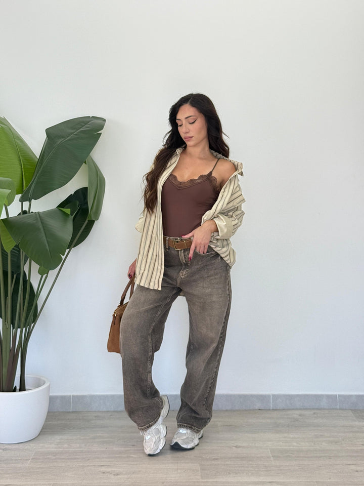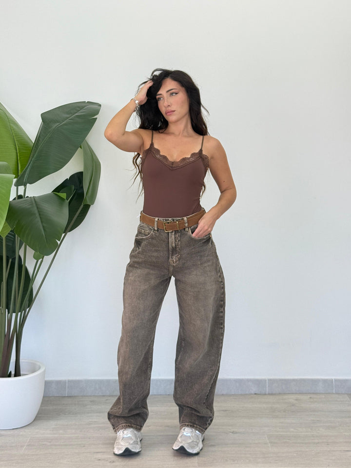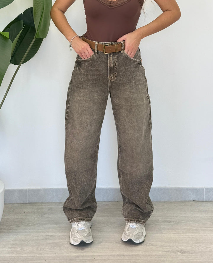 Jeans ballon; Denim Realizzato su tela fissa di qualitá con tasche e passanti per cintura, zip e bottone. Perfetto per qualsiasi outfit. Vestibilità regular.