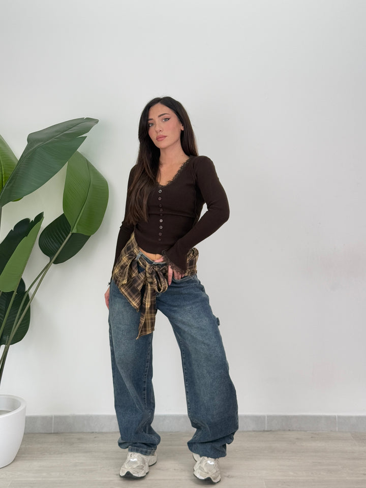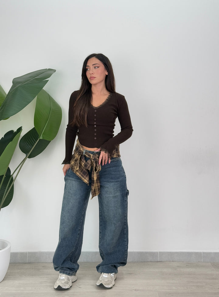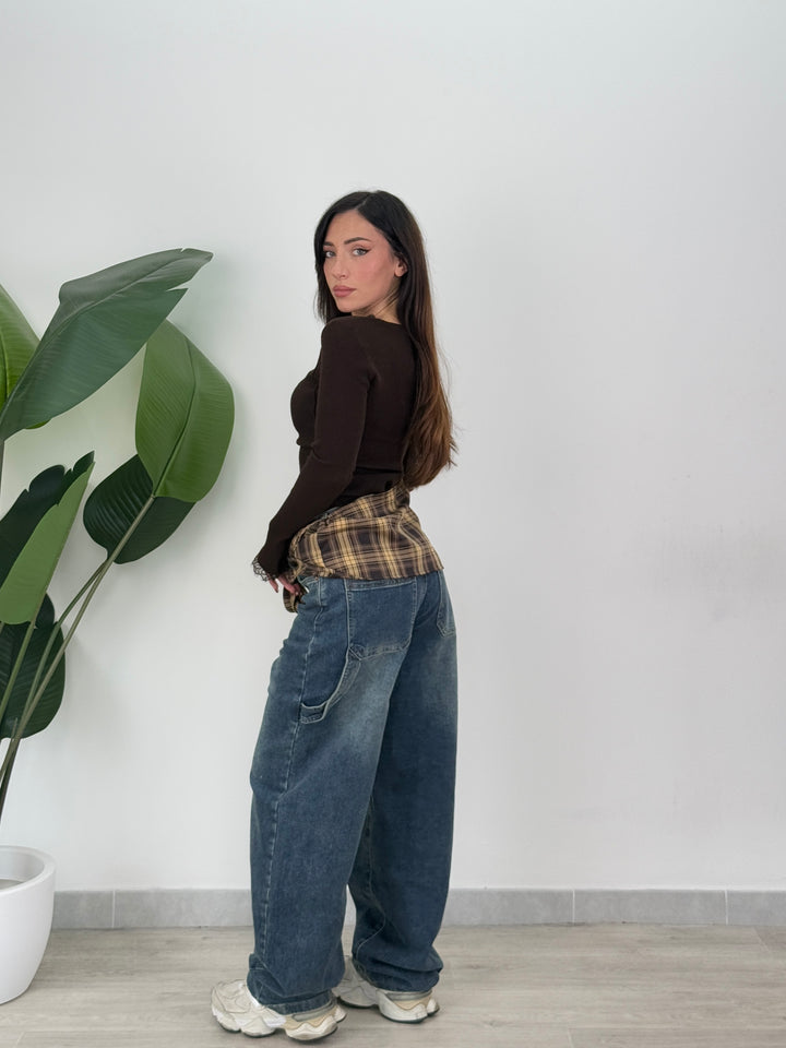 Jeans carpentier con camicia (rimovibile) modello ballon , Denim Realizzato su tela elastica di qualitá con tasche e passanti per cintura, zip e bottone. Perfetto per qualsiasi outfit.
