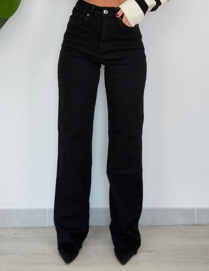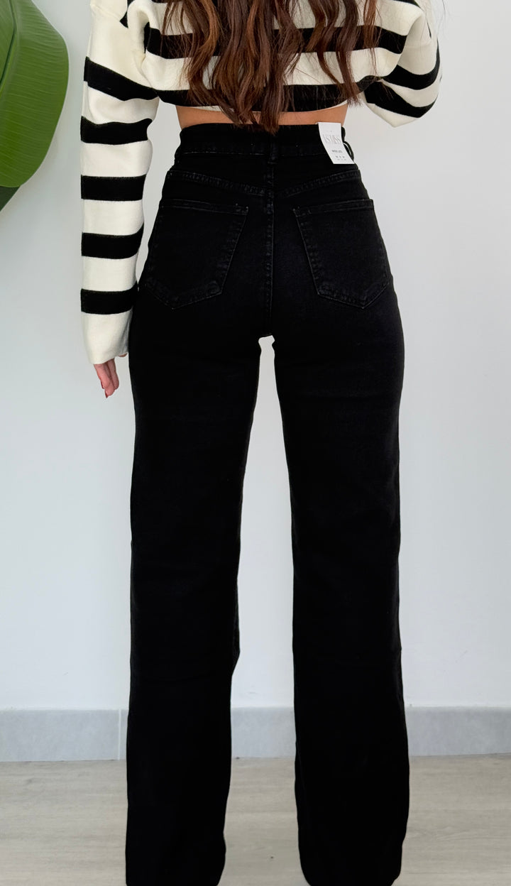Jeans wide leg Black, offre un fit spettacolare . Realizzati in denim di qualità su tela fissa, passanti in vita e chiusura centrale con bottone e cerniera. È ideale per ogni tuo outfit. Vestibiltà regular