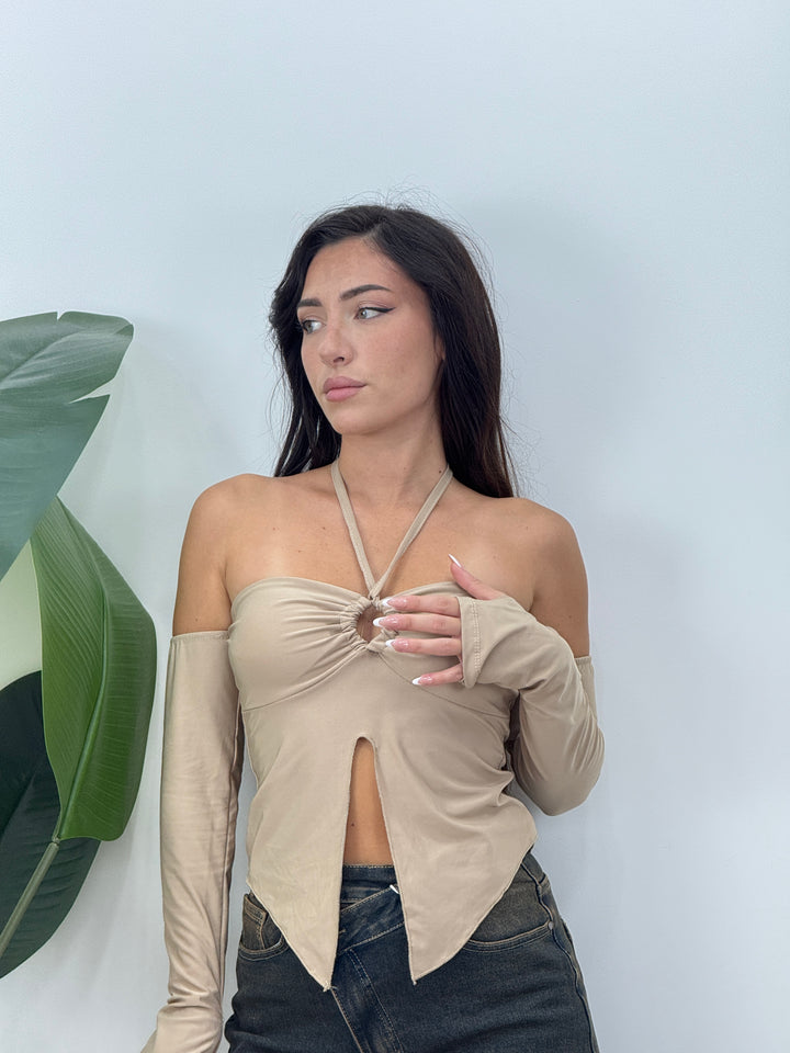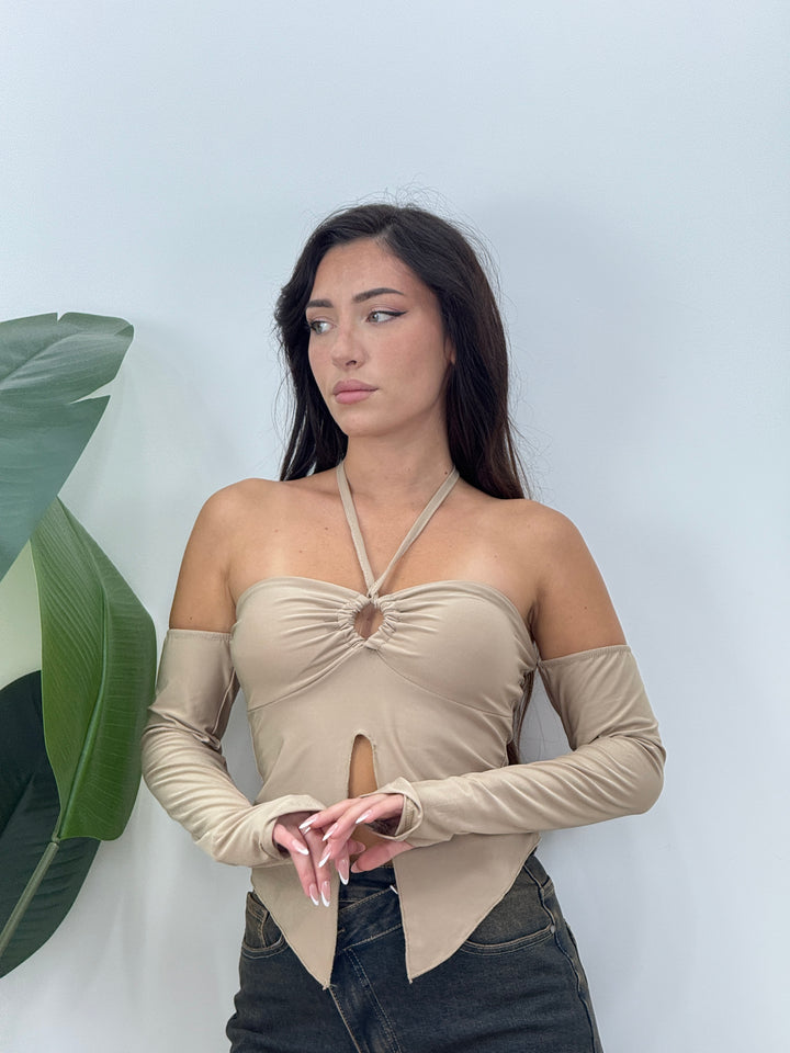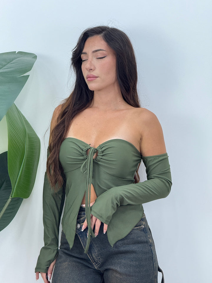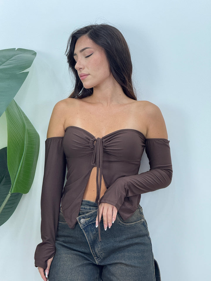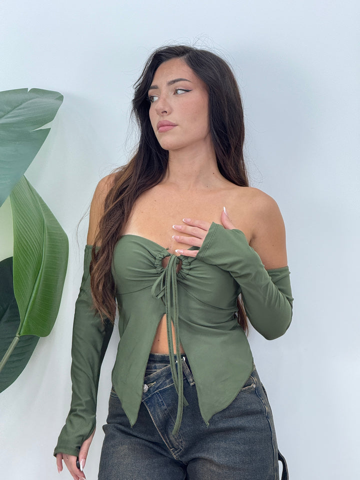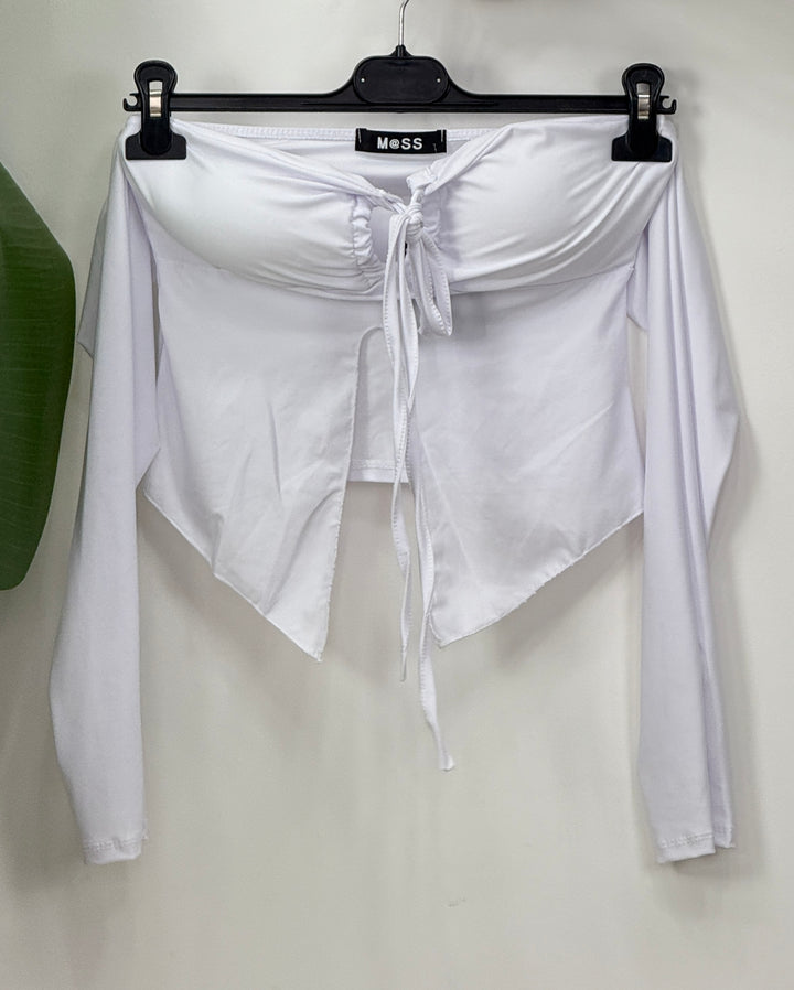 Maglia con scollo a barca , coppe preformate e lacci regolabili. Perfetto per ogni tuo outfit. Vestibilitá elasticizzata