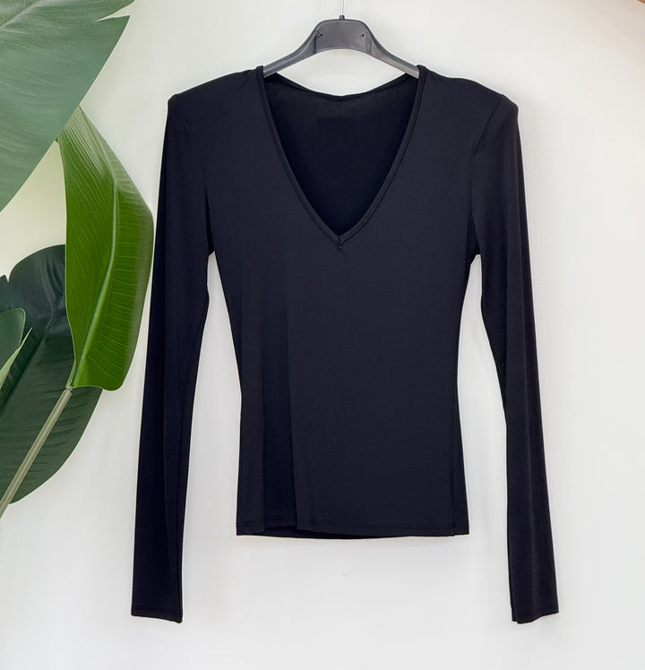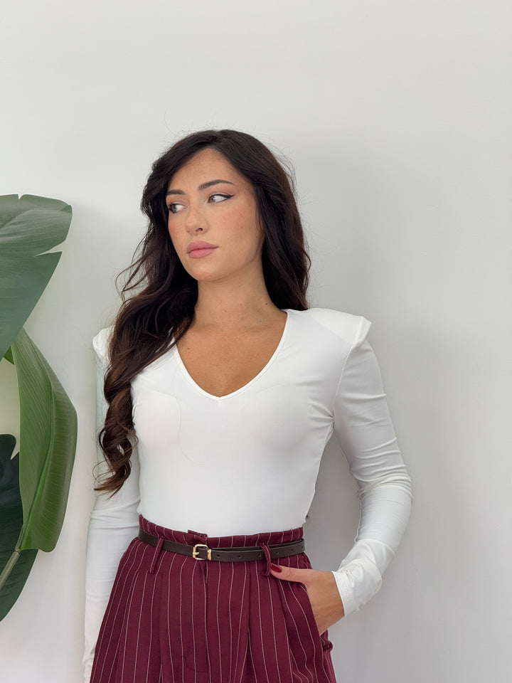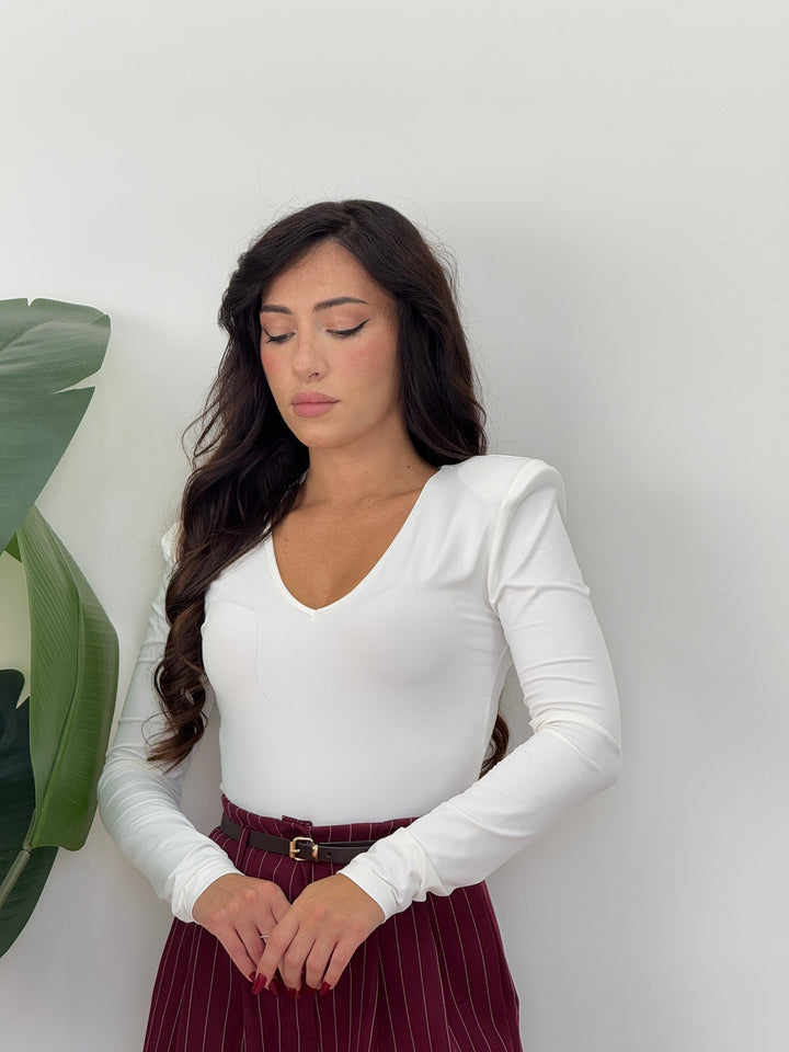 Maglia realizzata in lycra di qualità elasticizzata . Modello con scollo a V con spalline strutturate , perfetta per ogni occasione e per ogni tuo outfit, Vestibilità elasticizzata