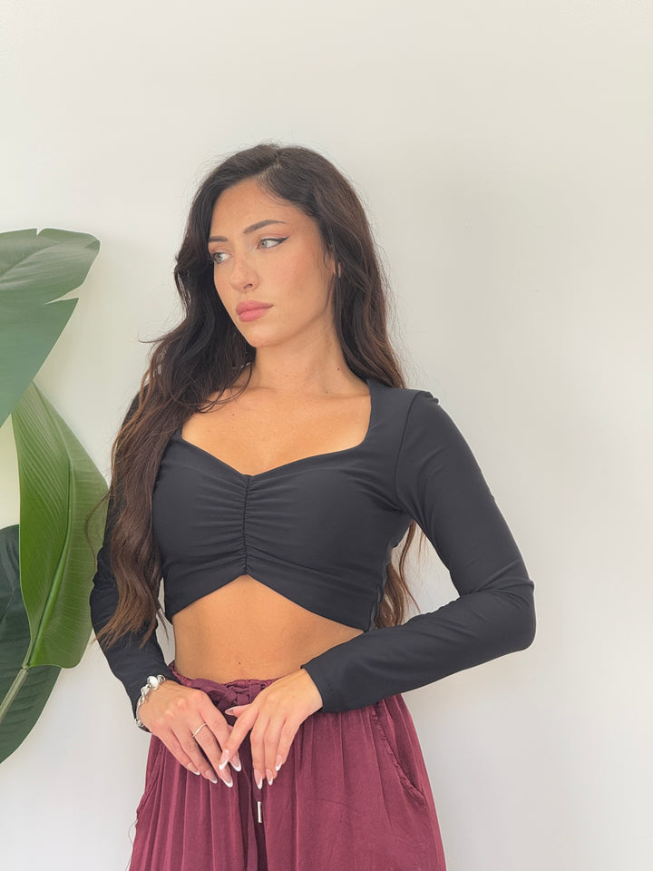 Maglia crop con coppe preformate. Perfetta per ogni tuo outfit. Vestibilitá elasticizzata