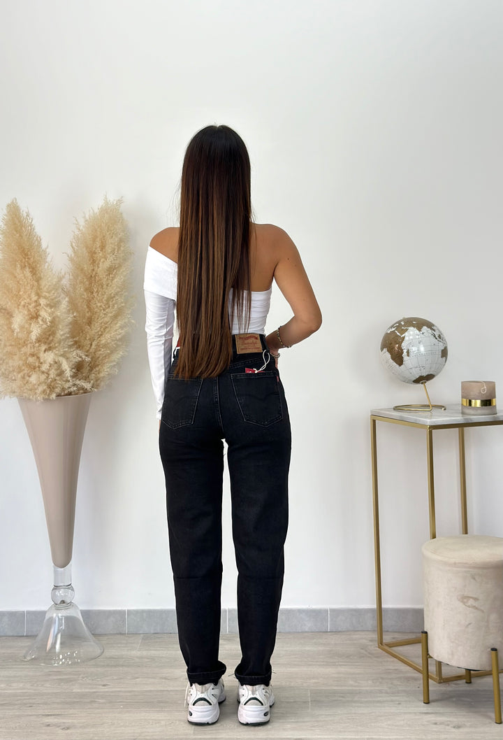 il jeans mom fit è un capo irrinunciabile per qualsiasi guardaroba femminile! Realizzato su tela semi- elastica, garantisce un fit meraviglioso e soprattutto alla moda perfetto per ogni occasione.