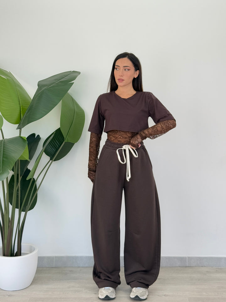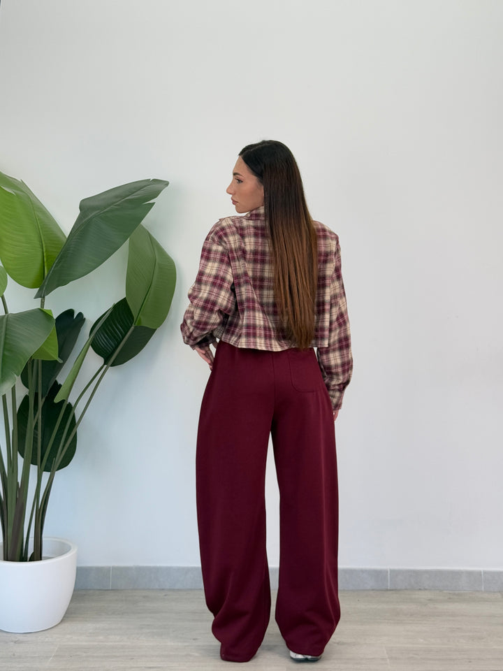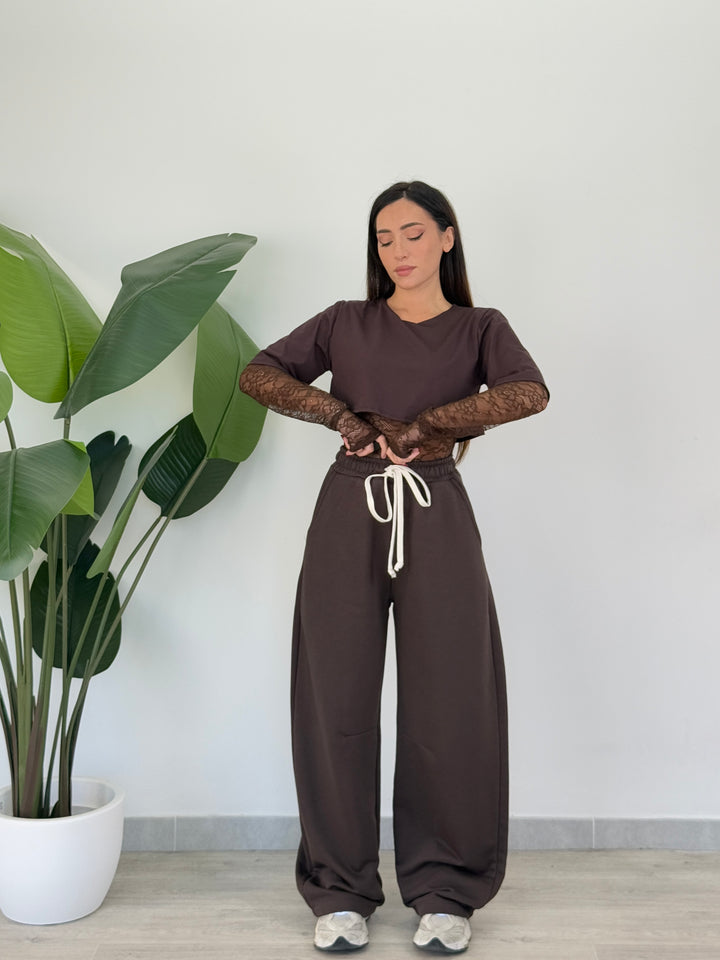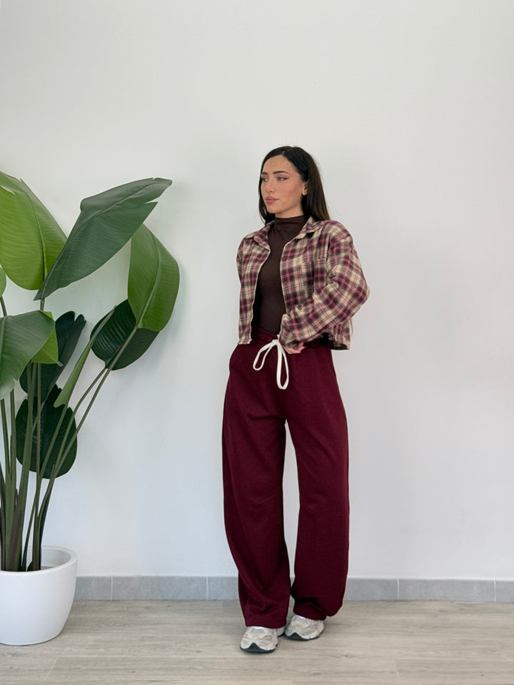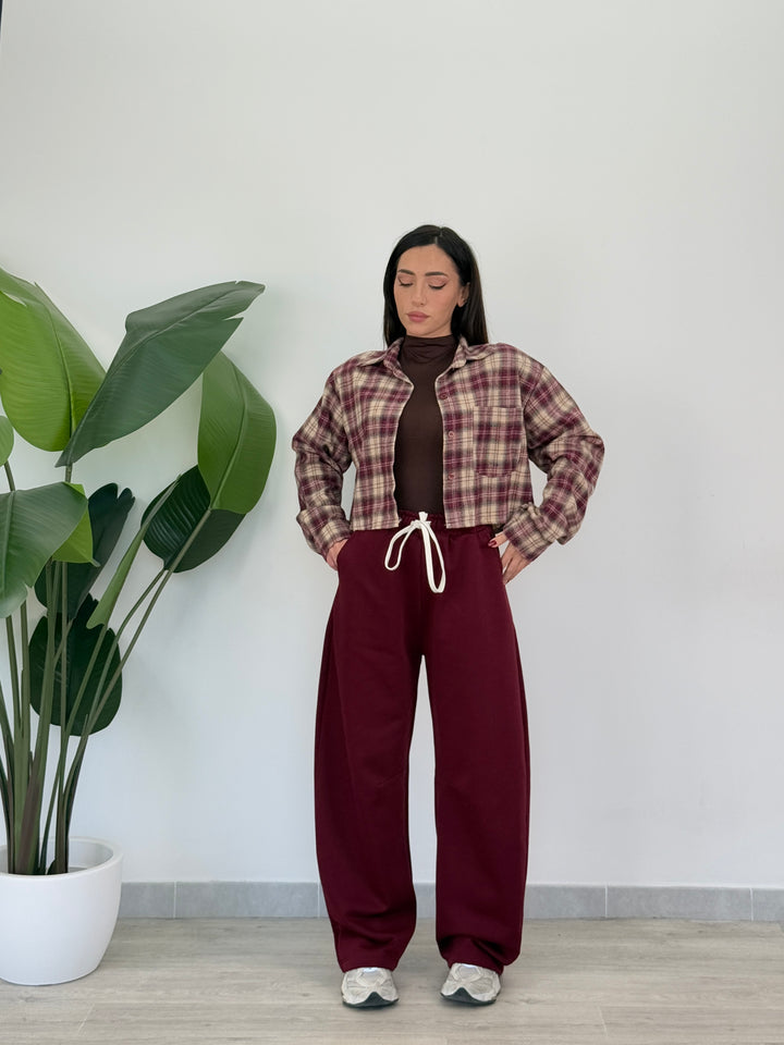 Pantaloni balloon in felpa, con taglio ampio e dritto, vita elasticizzata con coulisse regolabile e tasche laterali. Ideale per un look sportivo e pratico.