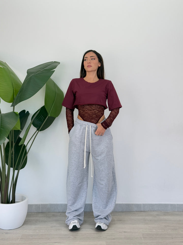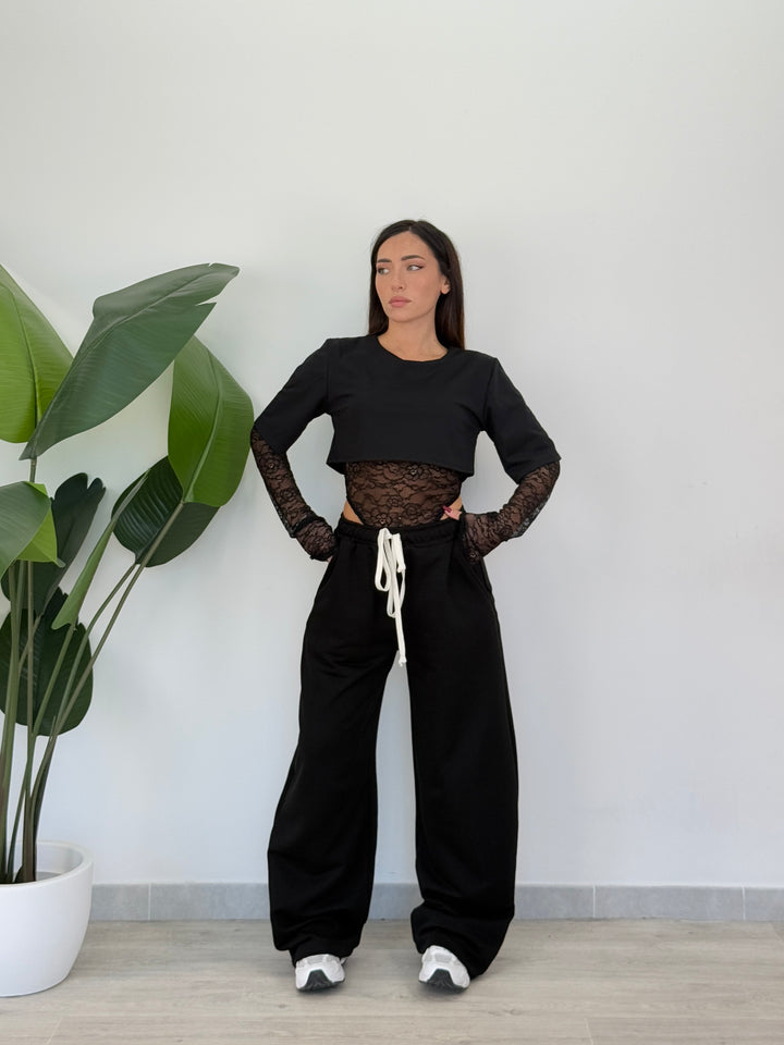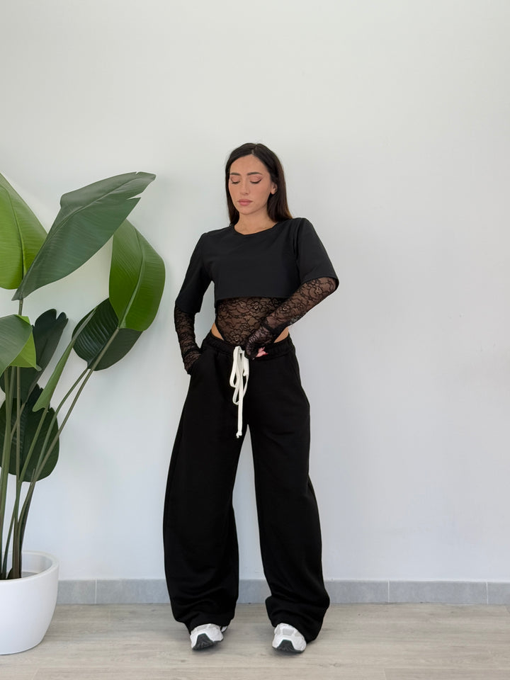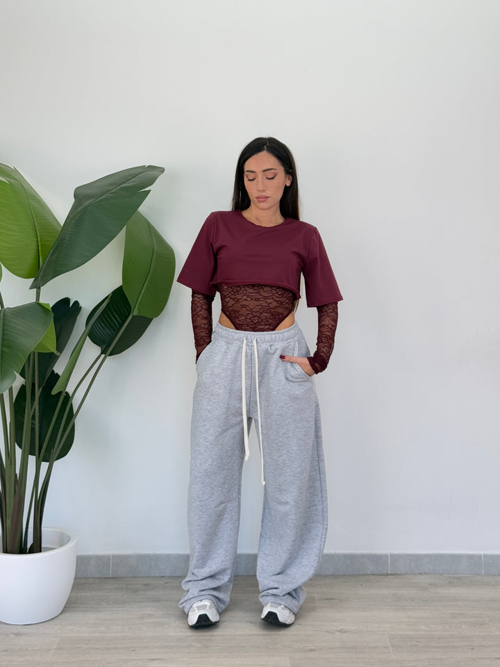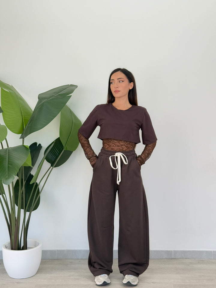 Pantaloni balloon in felpa, con taglio ampio e dritto, vita elasticizzata con coulisse regolabile e tasche laterali. Ideale per un look sportivo e pratico.