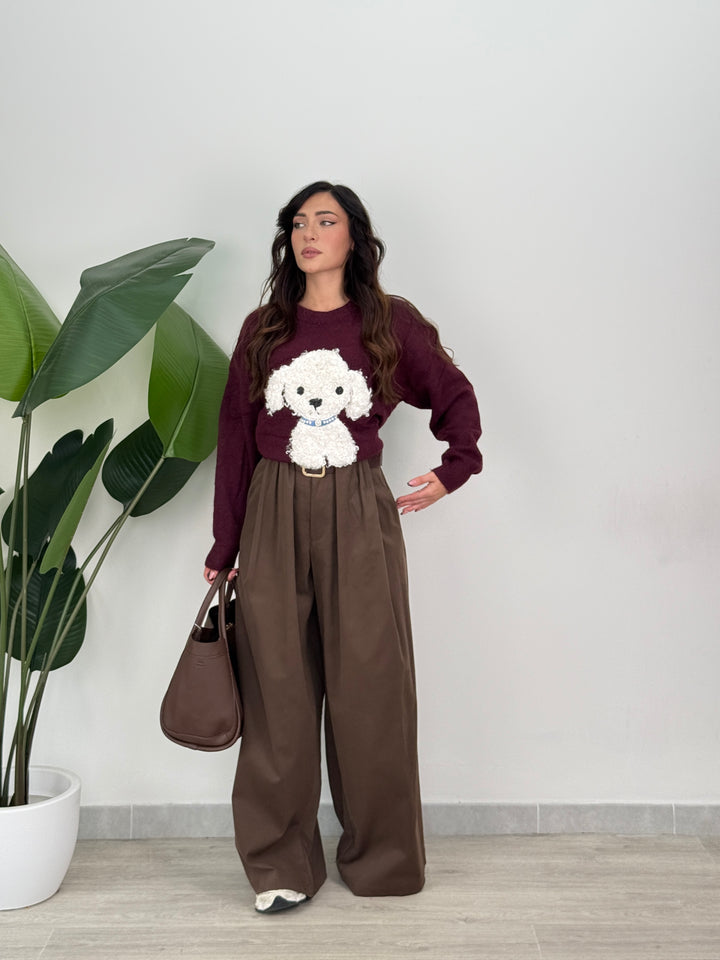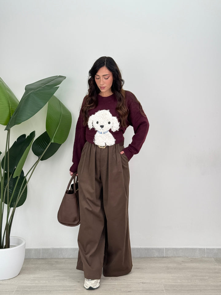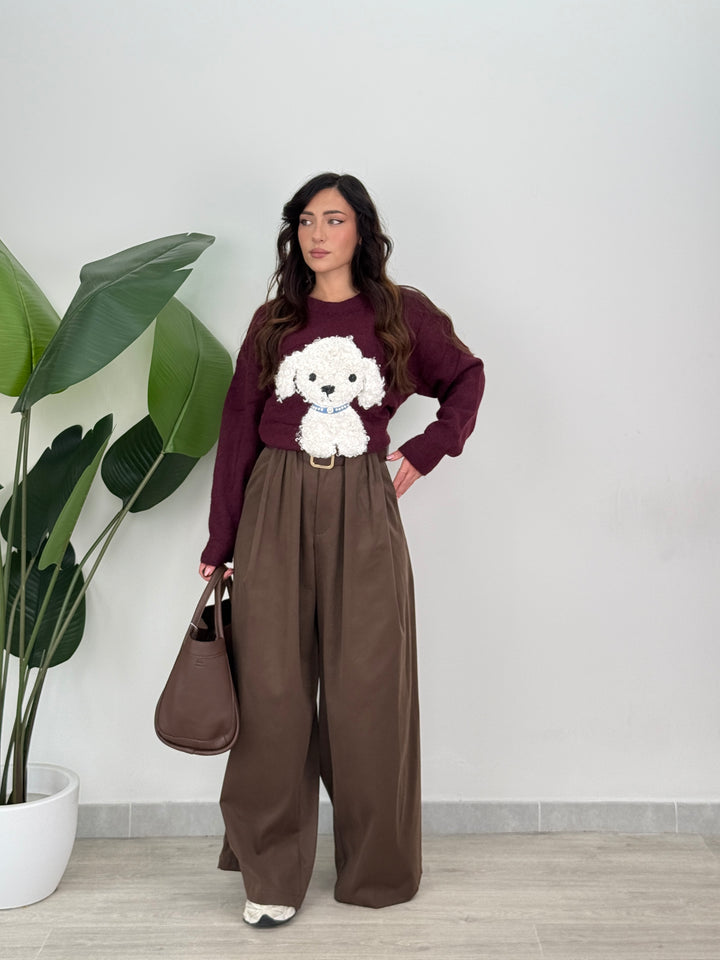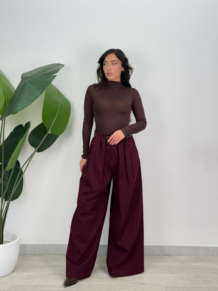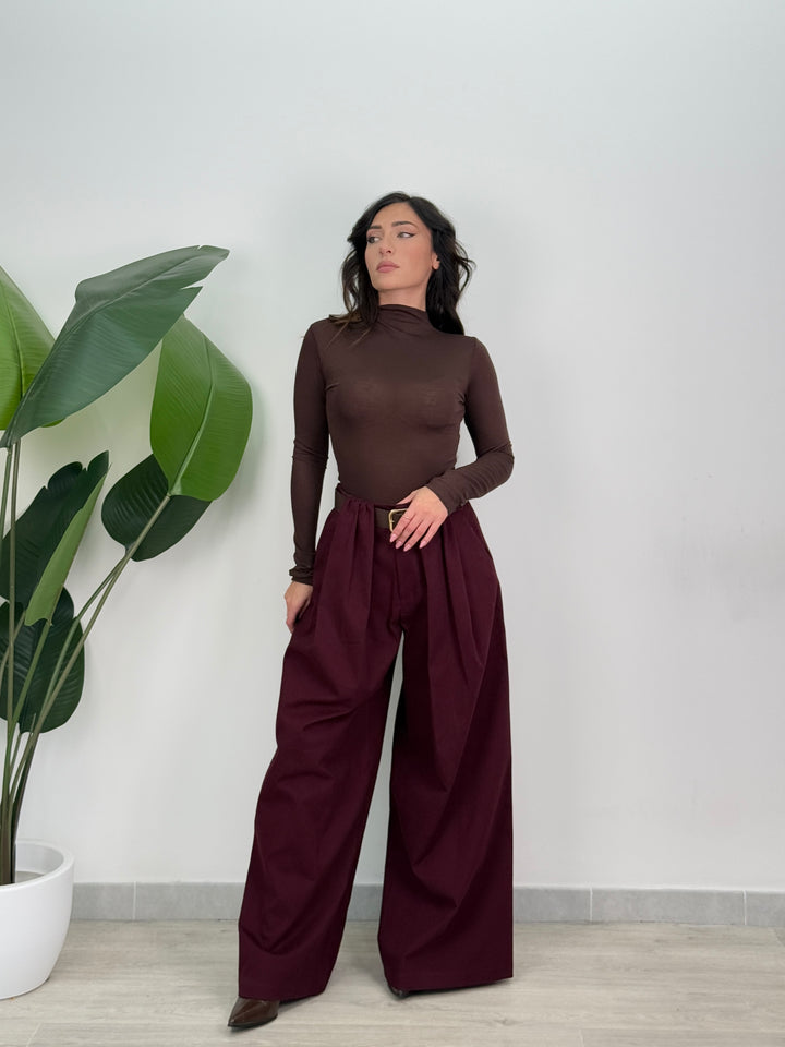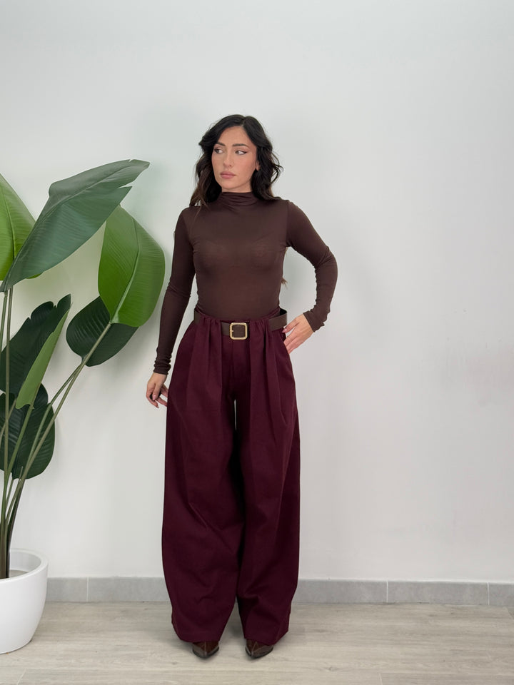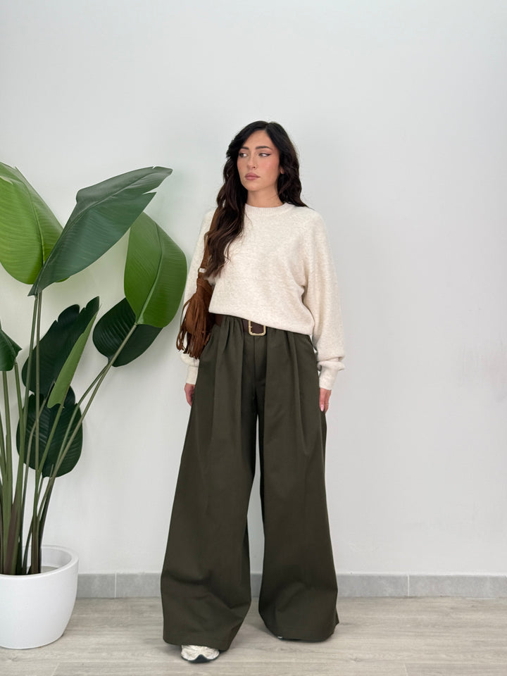 Scopri pantalone Scarlett! Pantalone palazzo ampio con elastico in vita sul retro , presenta una chiusura con bottone e zip centrale. Con cintura in vita regolabile e removibile. Perfetto per qualsiasi tipo di outfit.