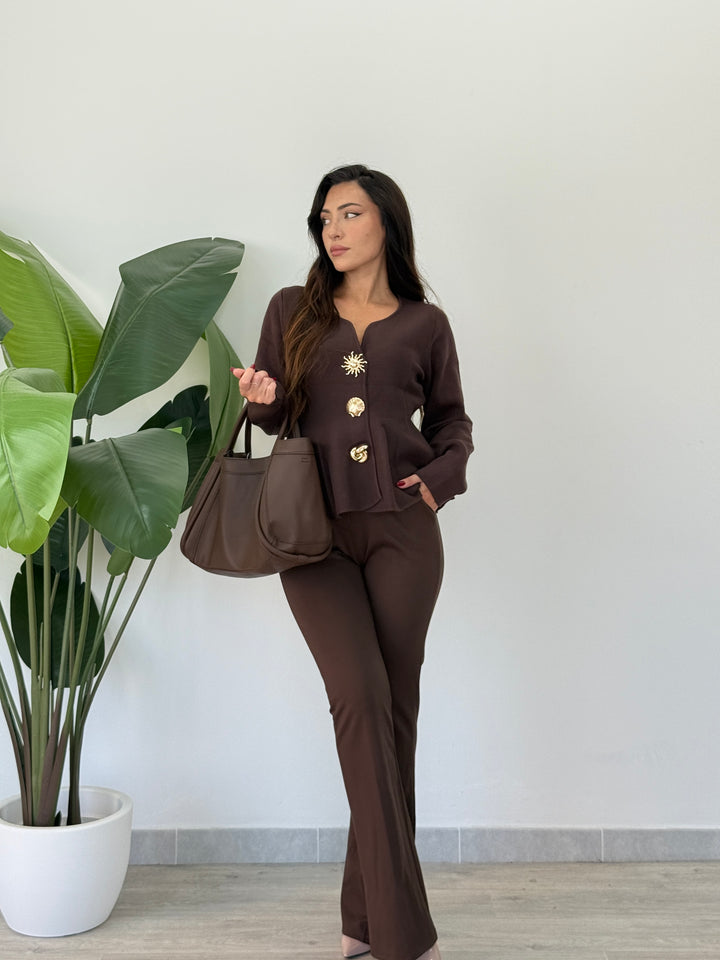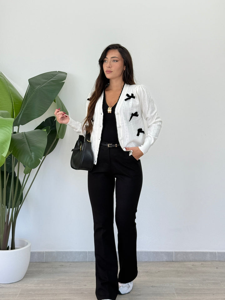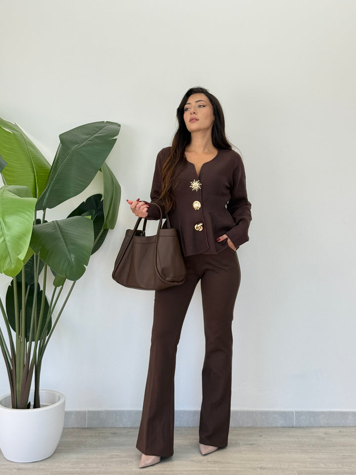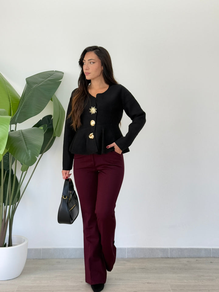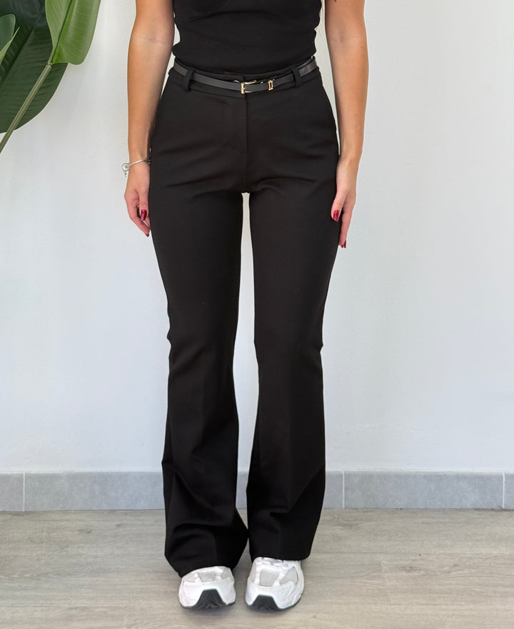 Questo magnifico pantalone a zampa Punto Milano ( l tessuto Punto Milano è una maglia a doppia lavorazione che unisce la morbidezza e l’elasticità del Jersey con la stabilità, il peso e la compattezza di un tessuto a telaio) . è l’ideale per creare un look sempre alla moda! Realizzato con un bottone ,una chiusura a zip centrale e passanti per cintura. Uno stile esclusivo ed unico per una donna; perfetto per qualsiasi tipo di occasione. Vestibilità super elasticizzata