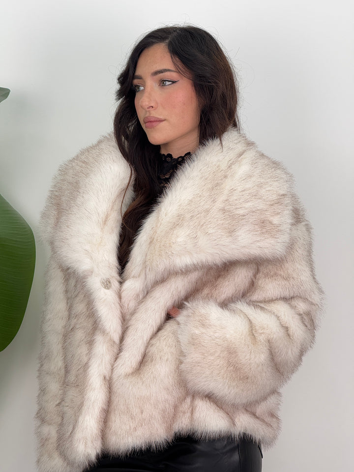 Scopri la pelliccia Diana! Pelliccia, dal volume soffice e fit avvolgente. Dotata di maniche lunghe ampie e chiusura frontale, offre un look elegante e caldo con effetto naturale.