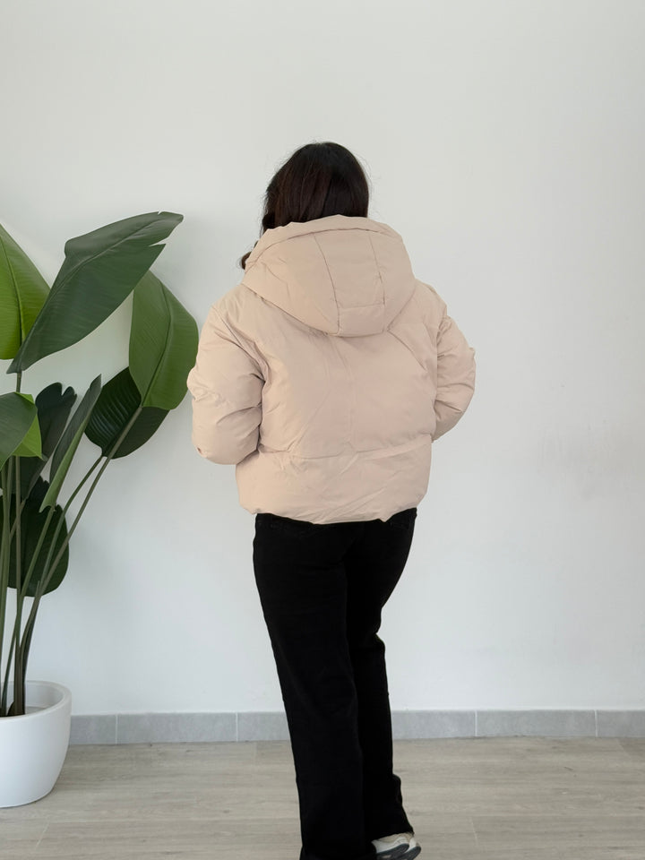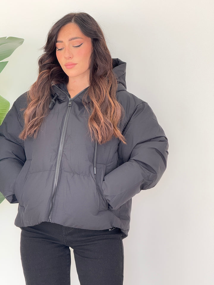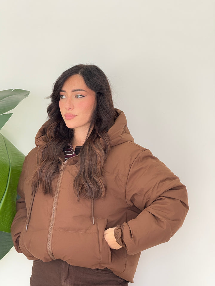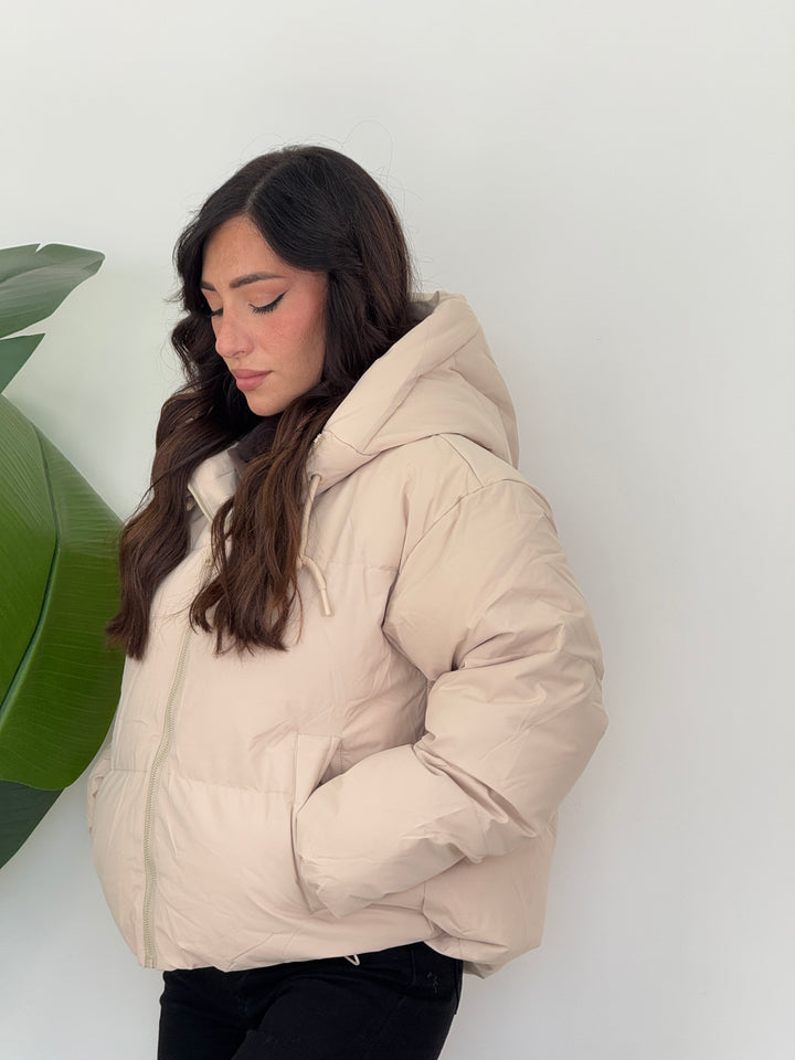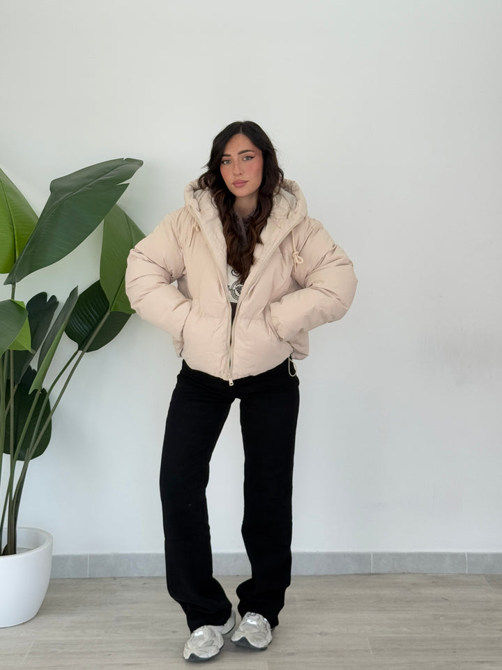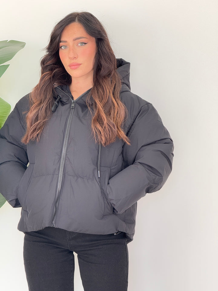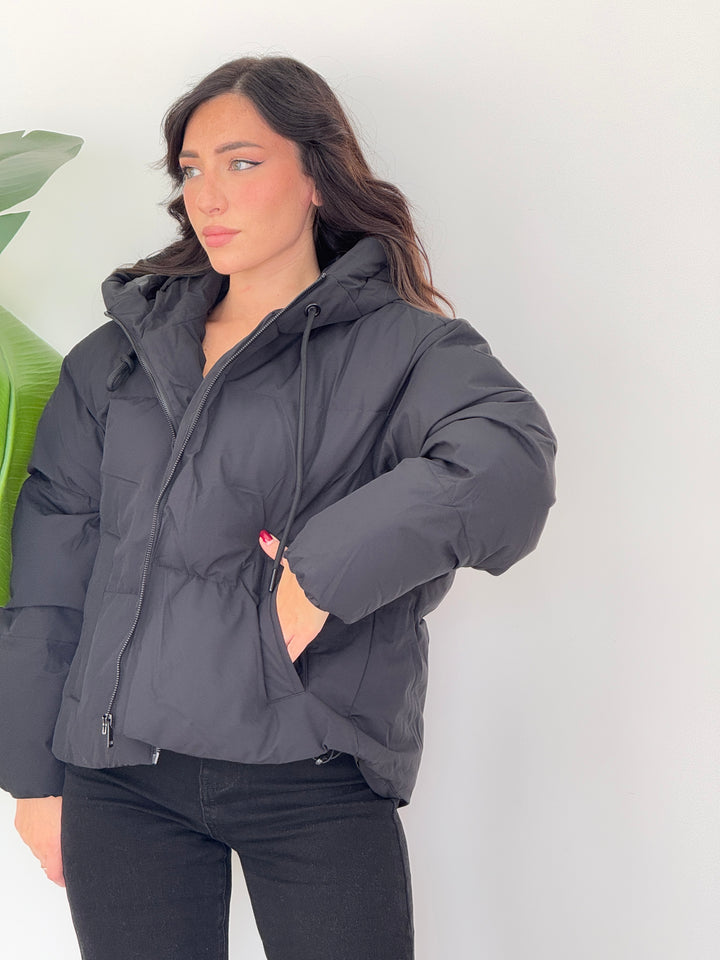Scopri il giubbotto Amanda! Giubbotto imbottito, con cappuccio e chiusura a zip. Dotato di tasche laterali ed elastici regolabili per comfort e protezione dal freddo.