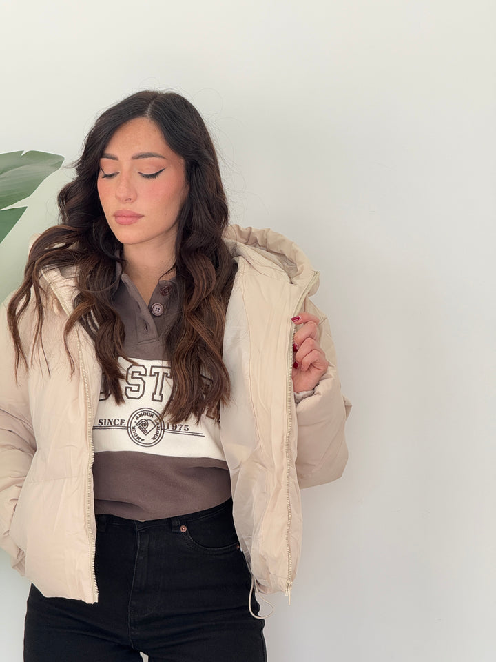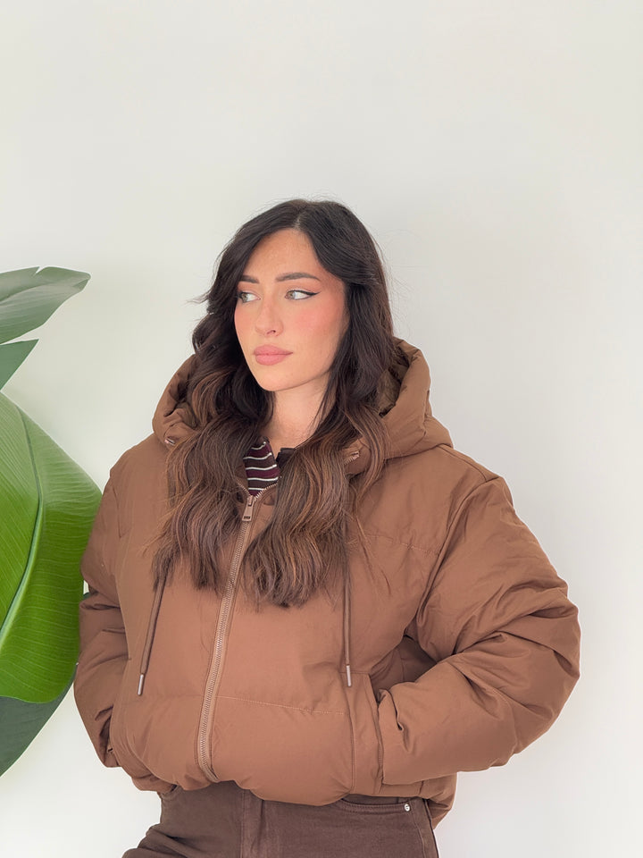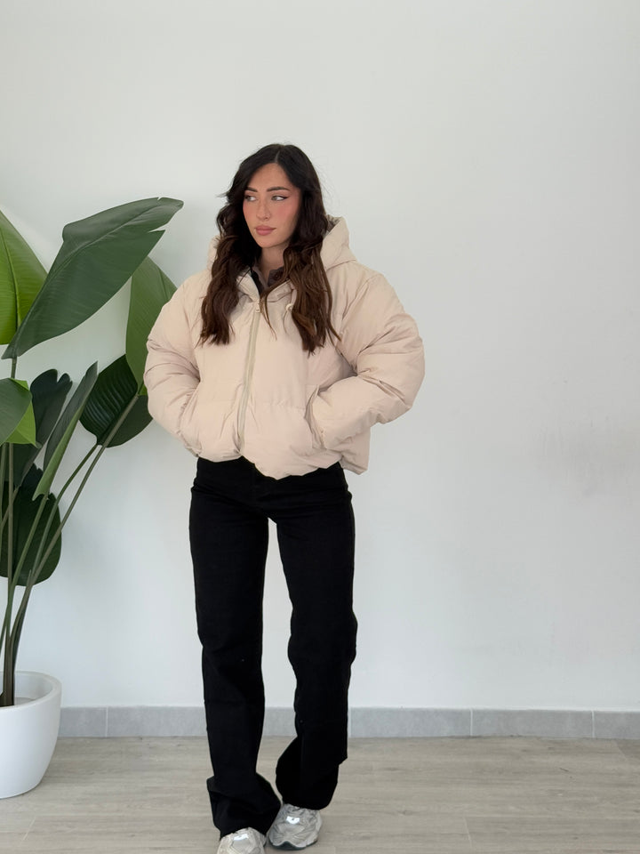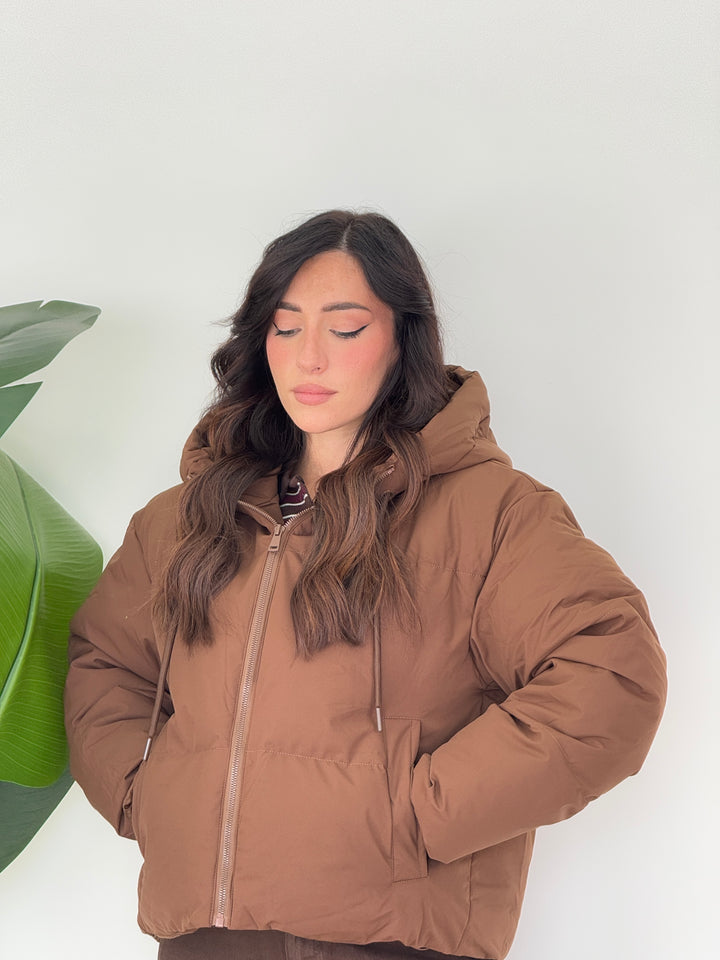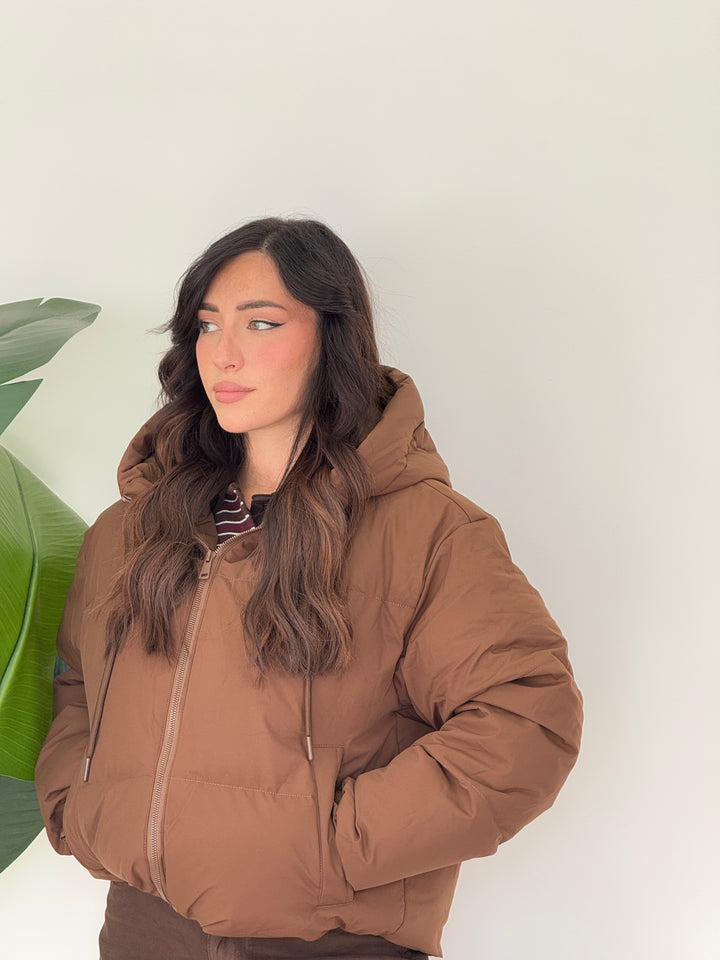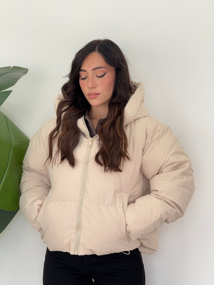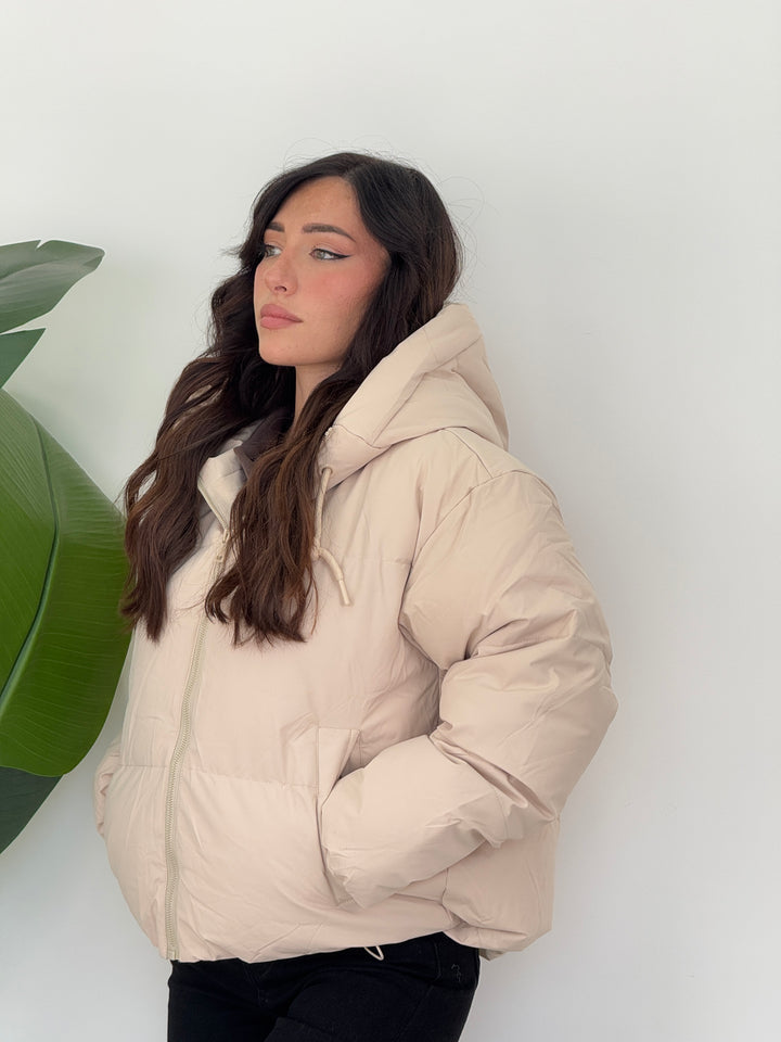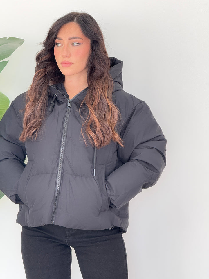 Scopri il giubbotto Amanda! Giubbotto imbottito, con cappuccio e chiusura a zip. Dotato di tasche laterali ed elastici regolabili per comfort e protezione dal freddo.
