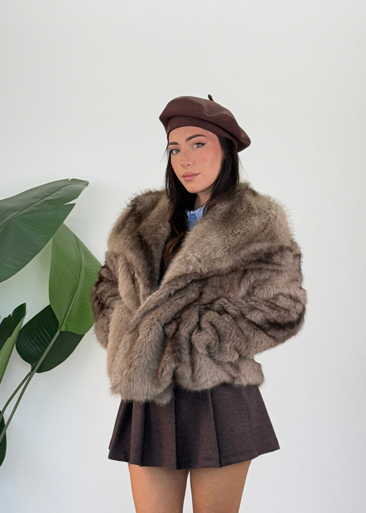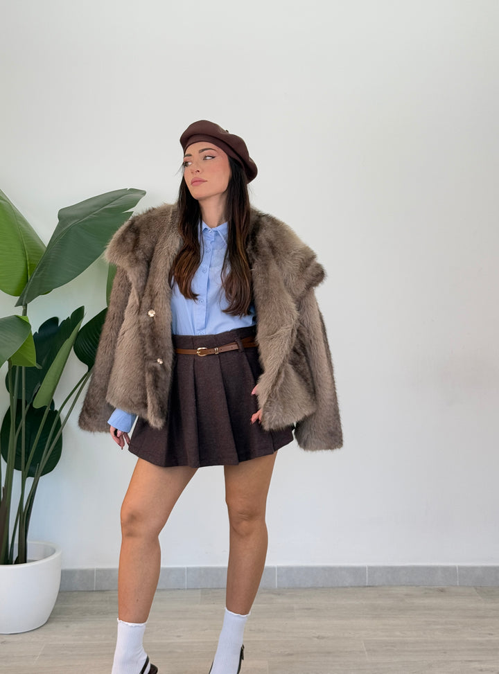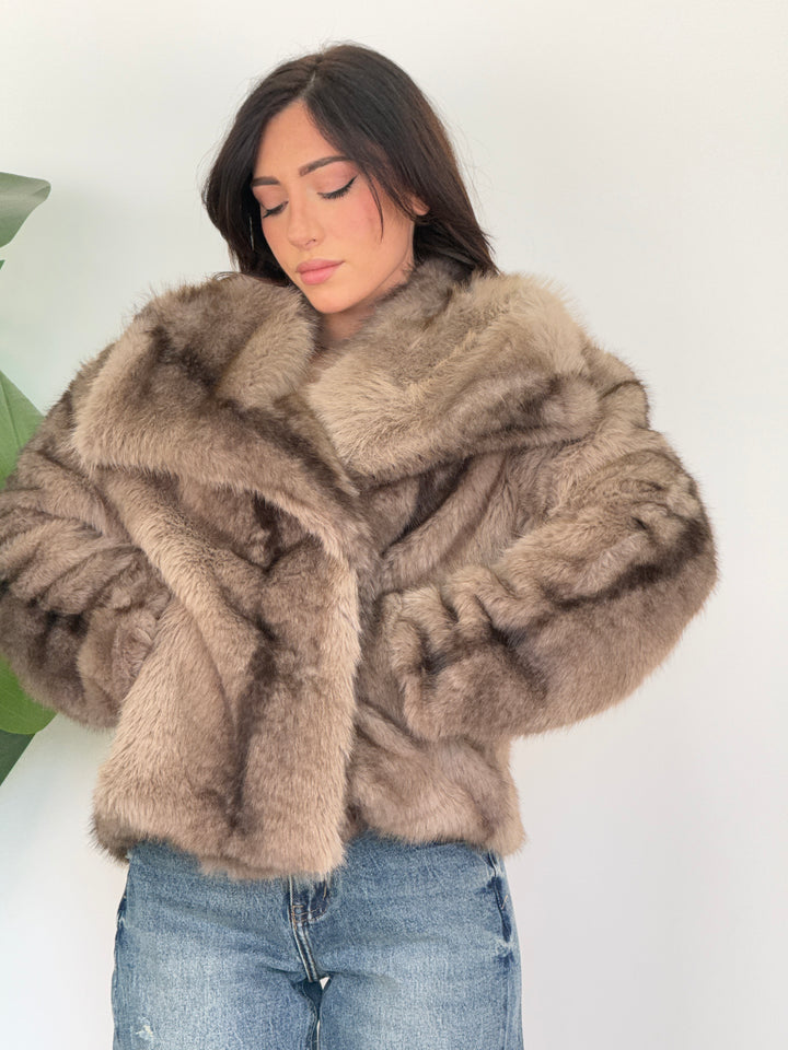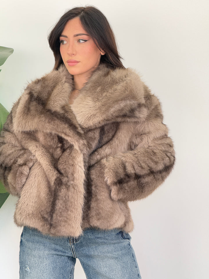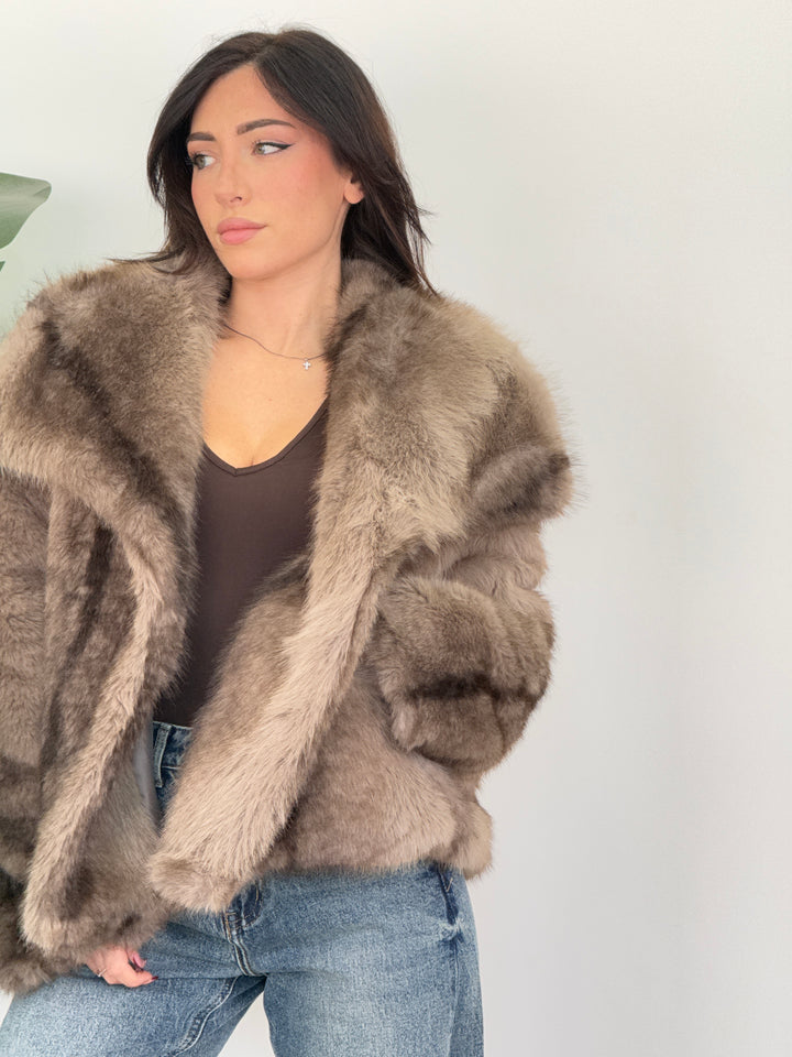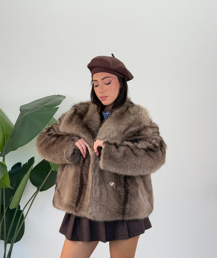 Scopri la pelliccia Velia! Pelliccia con collo ampio e vestibilità comoda, chiusura frontale a bottoni, tasche laterali. Elegante e calda, ideale per completare i look invernali.