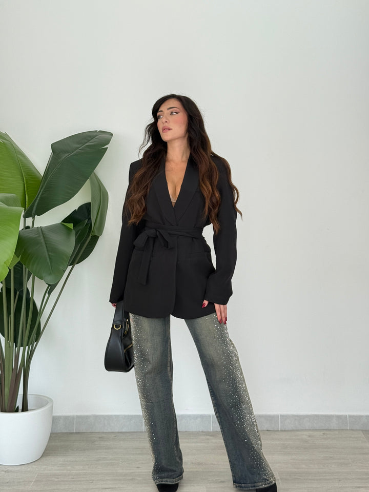 Scopri il Blazer Stephany! Blazer con linea sartoriale e scollo a V profondo,modello monopetto con una cintura removibile in tessuto, due tasche laterali a filetto, con maniche lunghe e taglio leggermente strutturato. Perfetto per ogni tuo outfit!Vestibilità semi-over