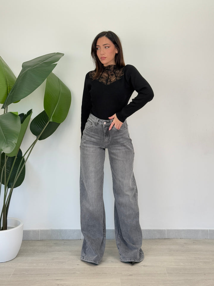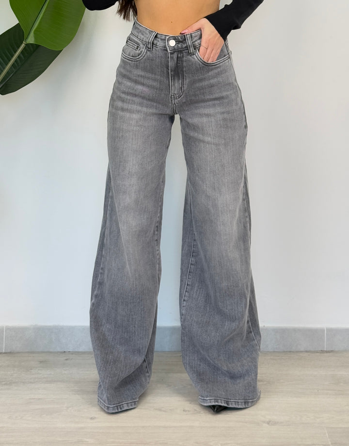 Scopri il jeans grey palazzone! Jeans realizzati in tela semi elastica,sono l’ideale per creare un look sempre alla moda! Uno stile esclusivo ed unico per una donna. Perfetto per ogni occasione, che sia per la quotidianità ,per lavoro o per qualche appuntamento ,utilizzando una décolleté per slanciarti di più.