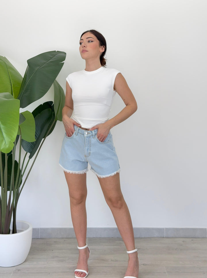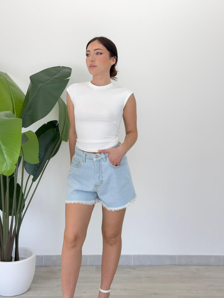 Scopri lo short denim Paige! Short realizzato su tela semi- elastica di qualitá con tasche e passanti per cintura, zip e bottone . Perfetto per qualsiasi outfit. Vestibilità regular.
